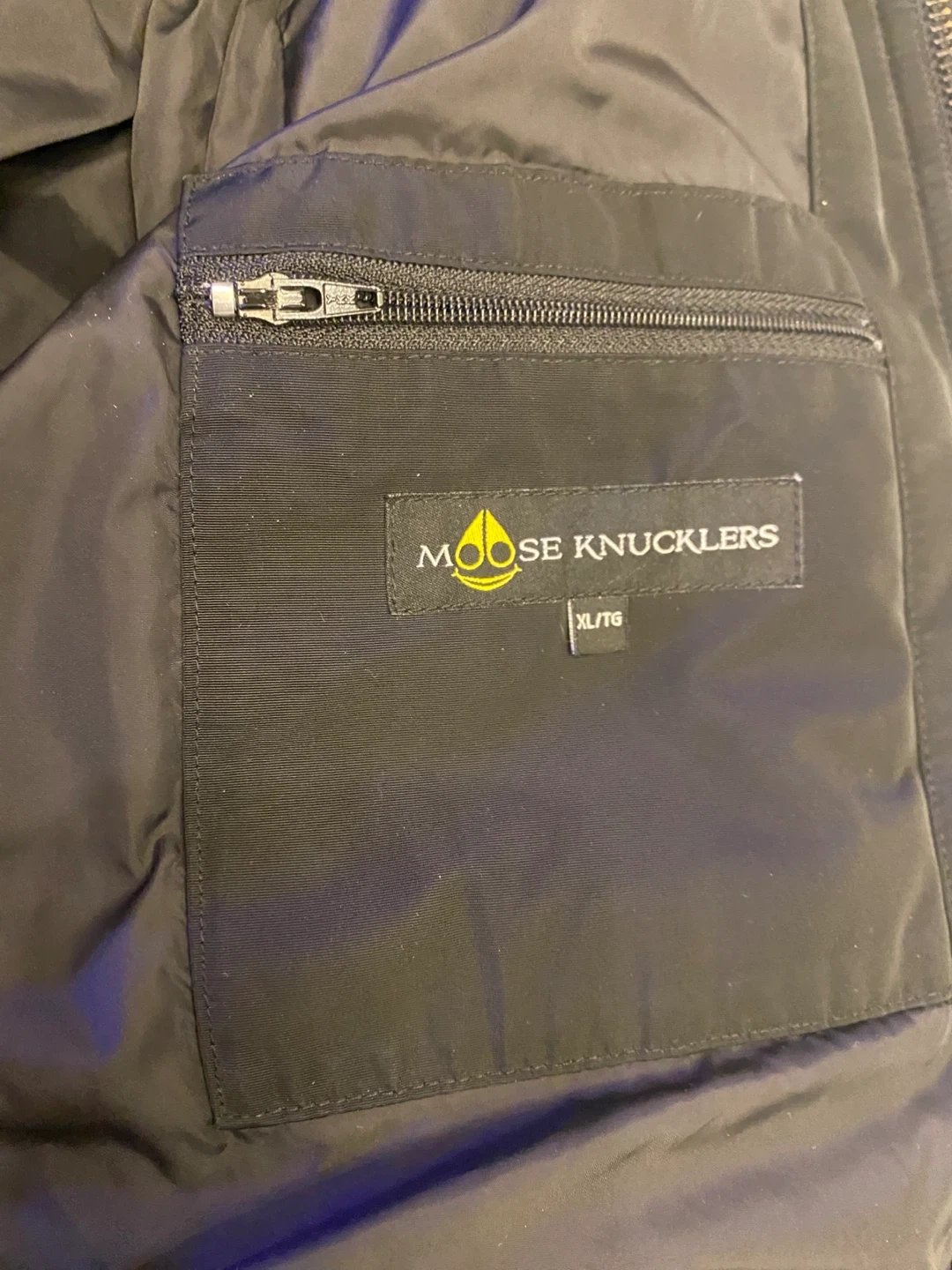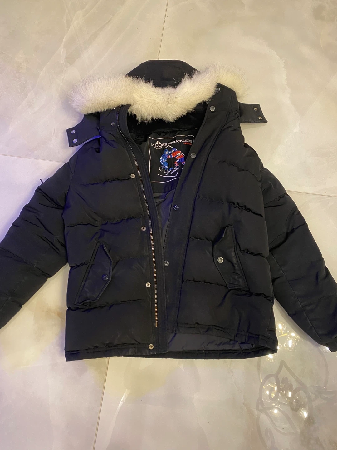 81Selling a Moose Knuckles black puffer jacket in size youth XL. It's in great condition and ready to keep you warm this winter!