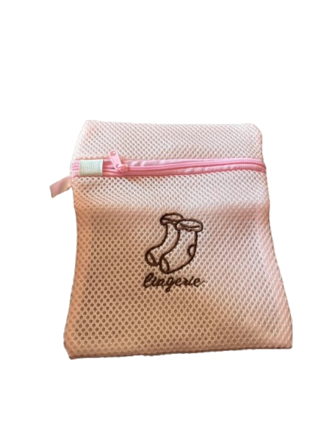 Light pink mesh lingerie laundry bag with a secure zipper closure and a cute embroidered sock-and-“lingerie” design on the front. Perfect for washing delicates, small clothing items, baby socks, or anything that needs extra protection in the machine. Lightweight, breathable, and easy to store. Clean and in excellent condition.