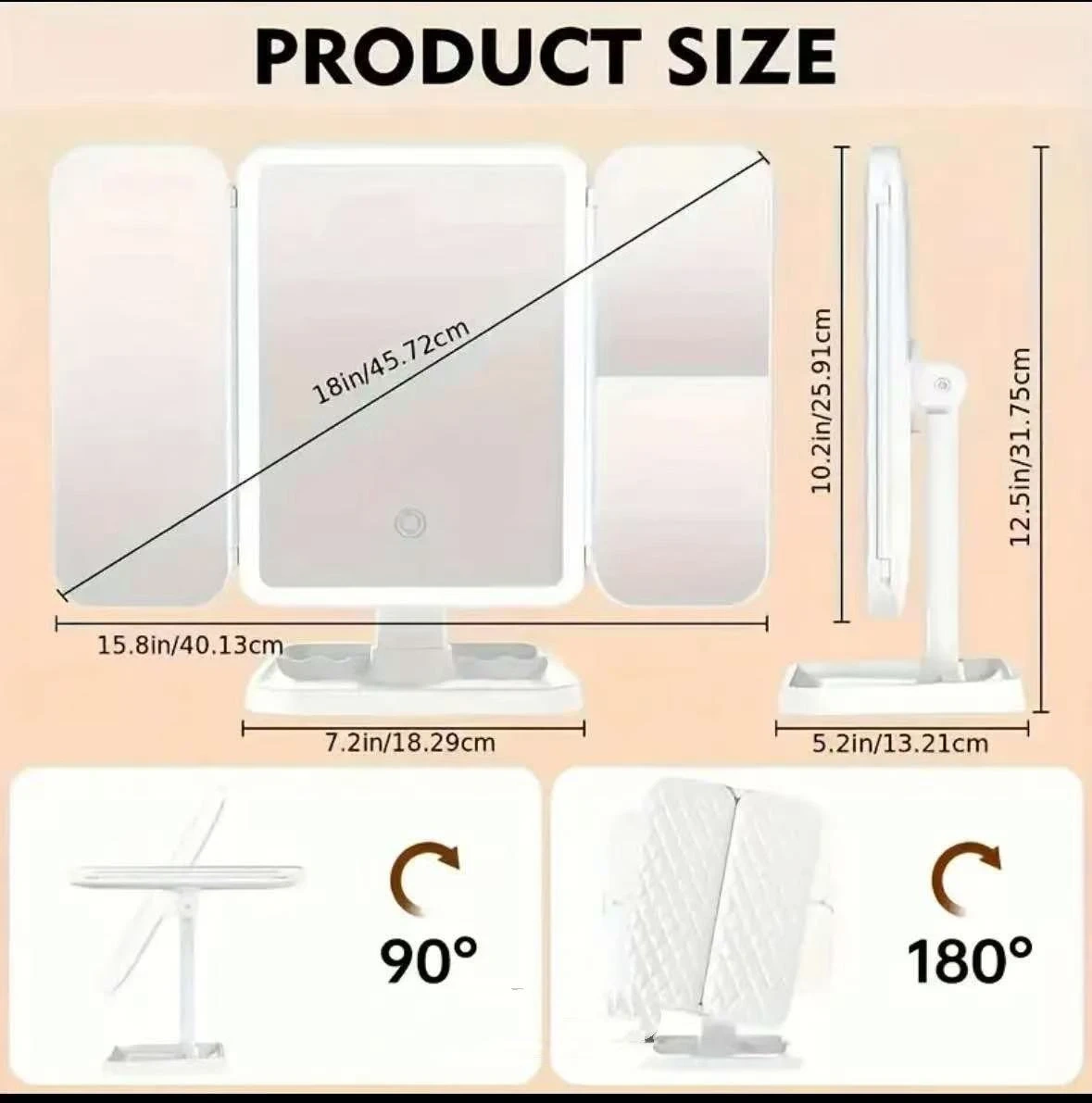 Tri-Fold LED Makeup Mirror