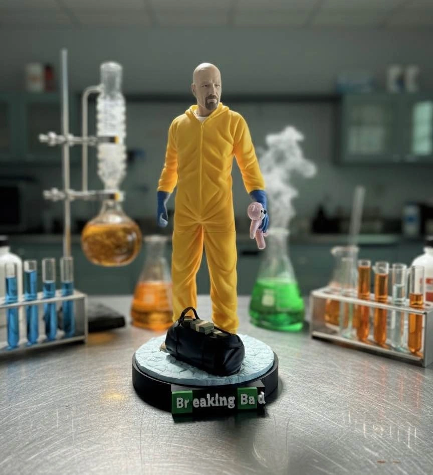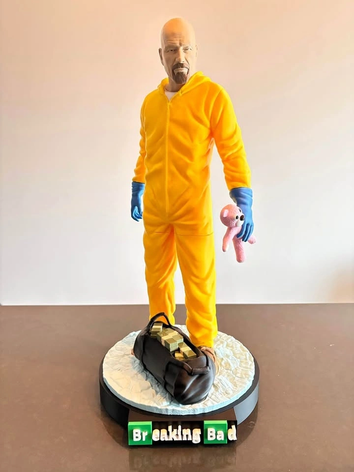 This premium Walter White figure is a large, high-detail 3D printed collectible produced on a Bambu Lab printer using 12 colors through AMS, delivering exceptional accuracy, color separation and sharp details. Perfect for Breaking Bad fans, collectors, display shelves, desks, studios or themed décor setups.