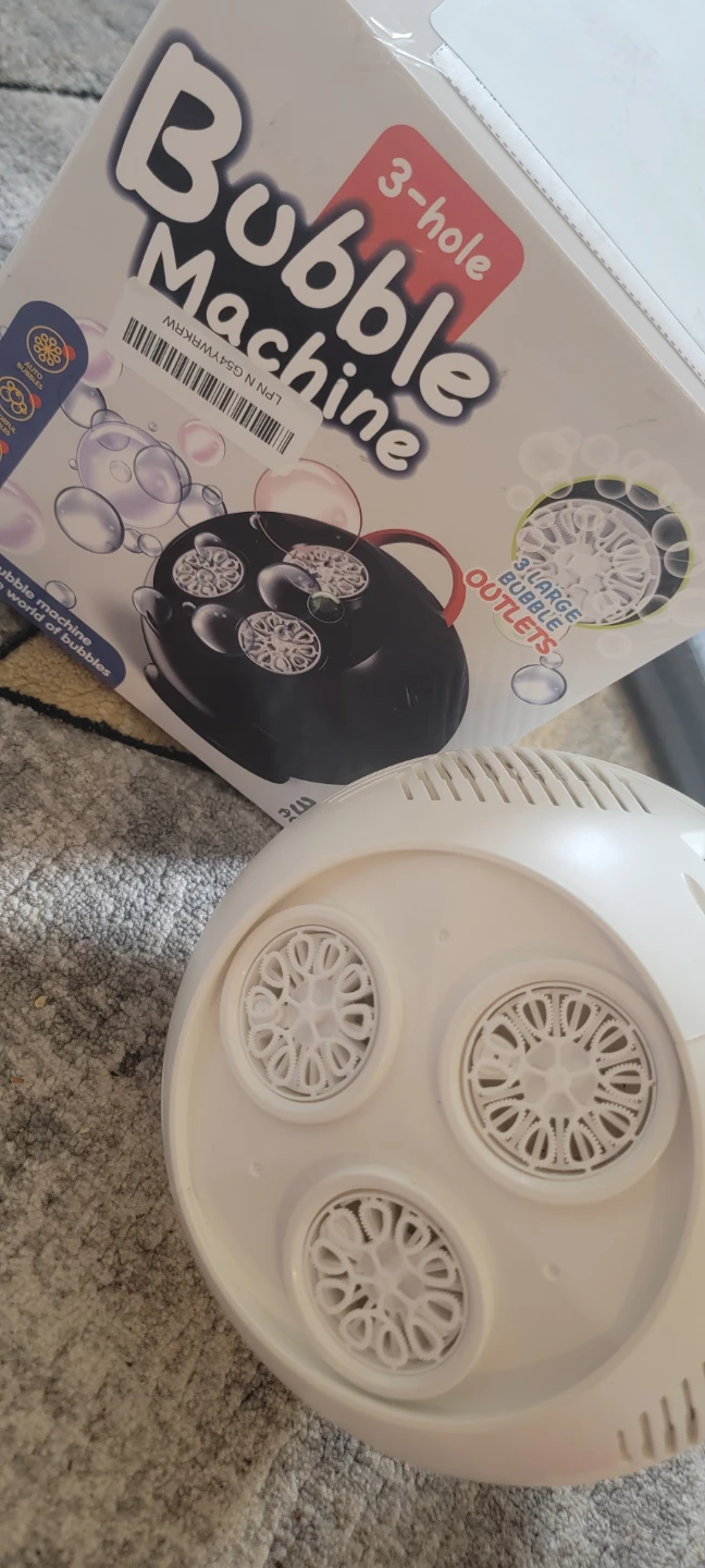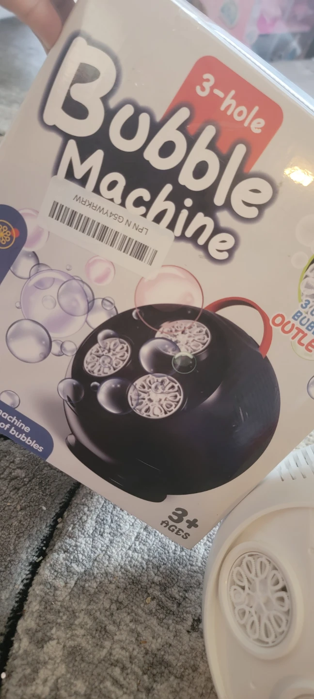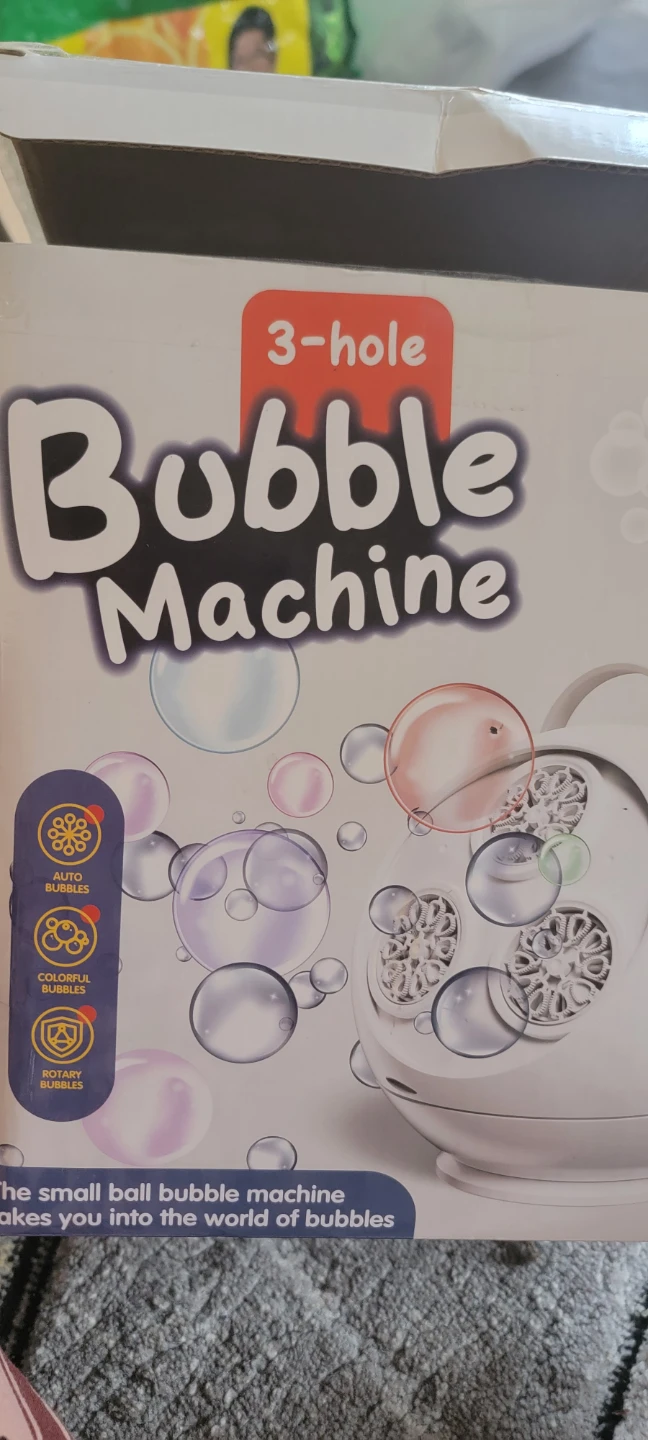 This bubble machine creates tons of fun with its 3 large bubble outlets. It's designed for ages 3 and up. This small ball bubble machine makes you the world of bubbles!