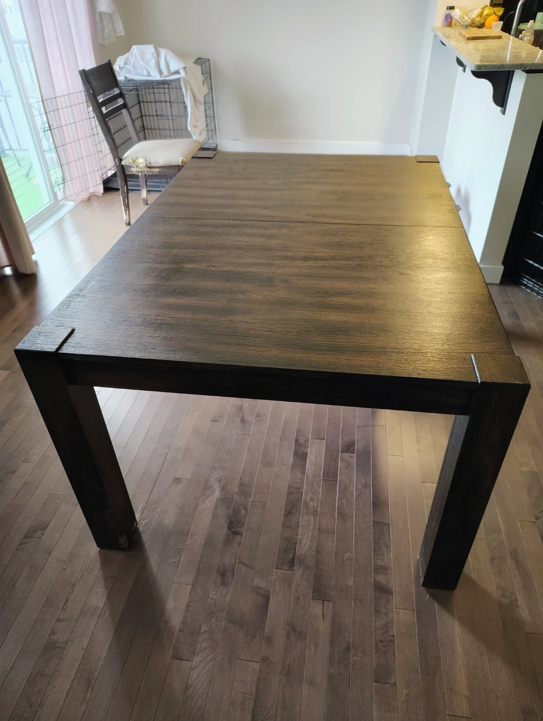 Selling a solid dark wood dining table. It's in great condition and ready for a new home!