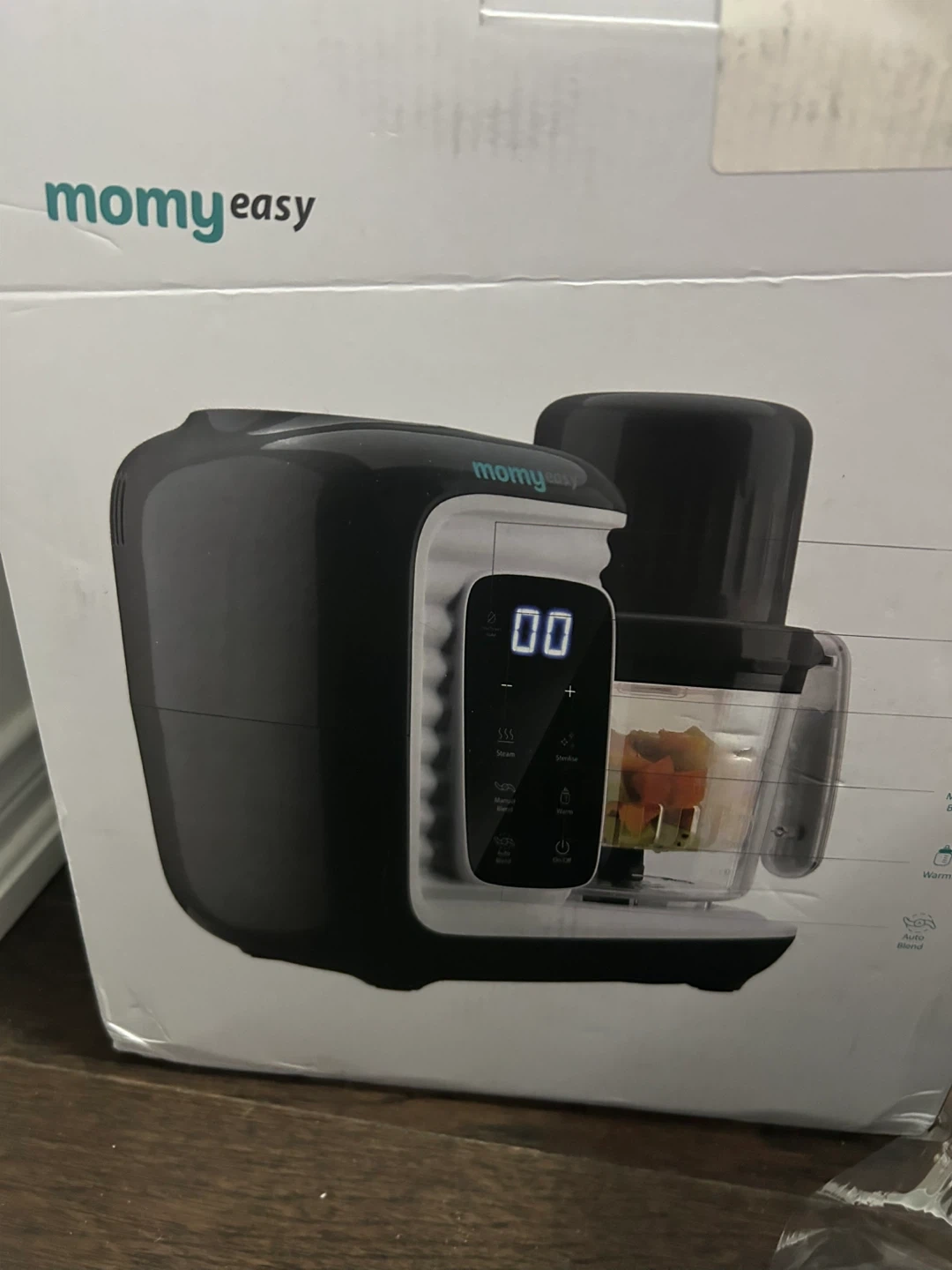 MomyEasy baby food maker steams and blends food for your little one. It steams, blends, sterilizes, and warms food. This appliance is great for preparing fresh meals for babies.