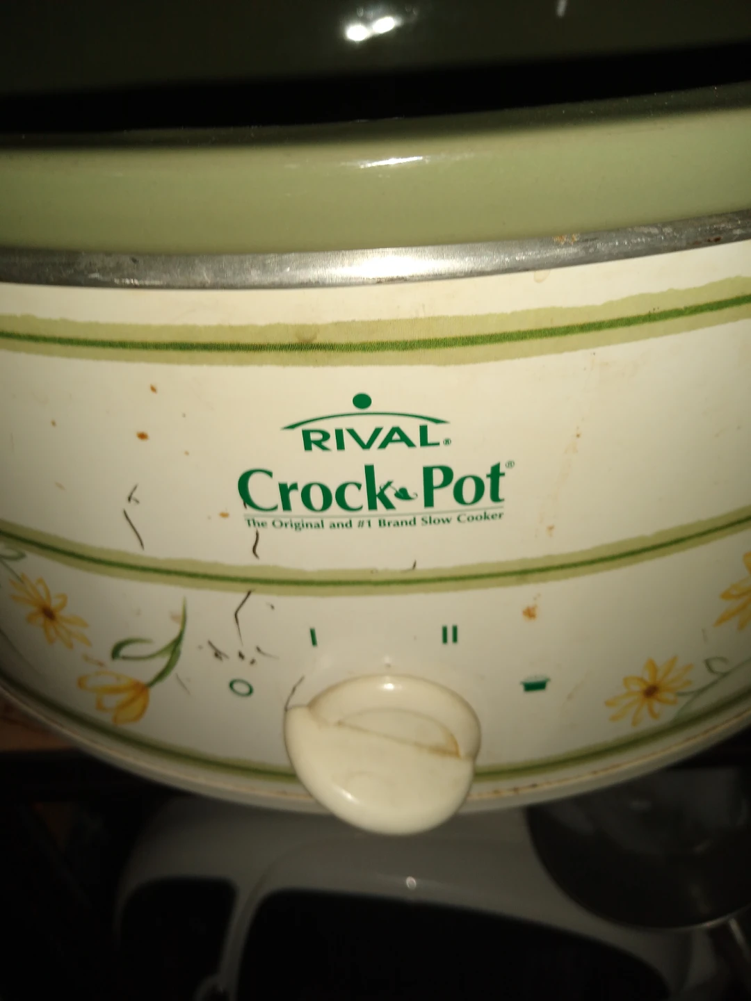 This is a great Crock-Pot it's big enough to feed the crowd or just the family . It makes so many meals of breeze and easy cleanup. it has three temperature settings and is in perfect condition not a crack or a chip anywhere on it .