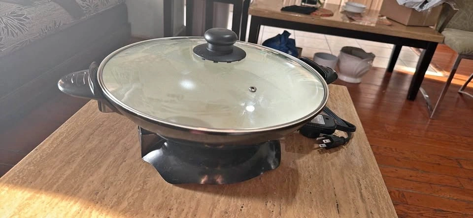 Cook a variety of meals quickly and easily with this clean, gently used Oster Electric Wok. Perfect for stir-fries, steaming, sautéing, and more!
