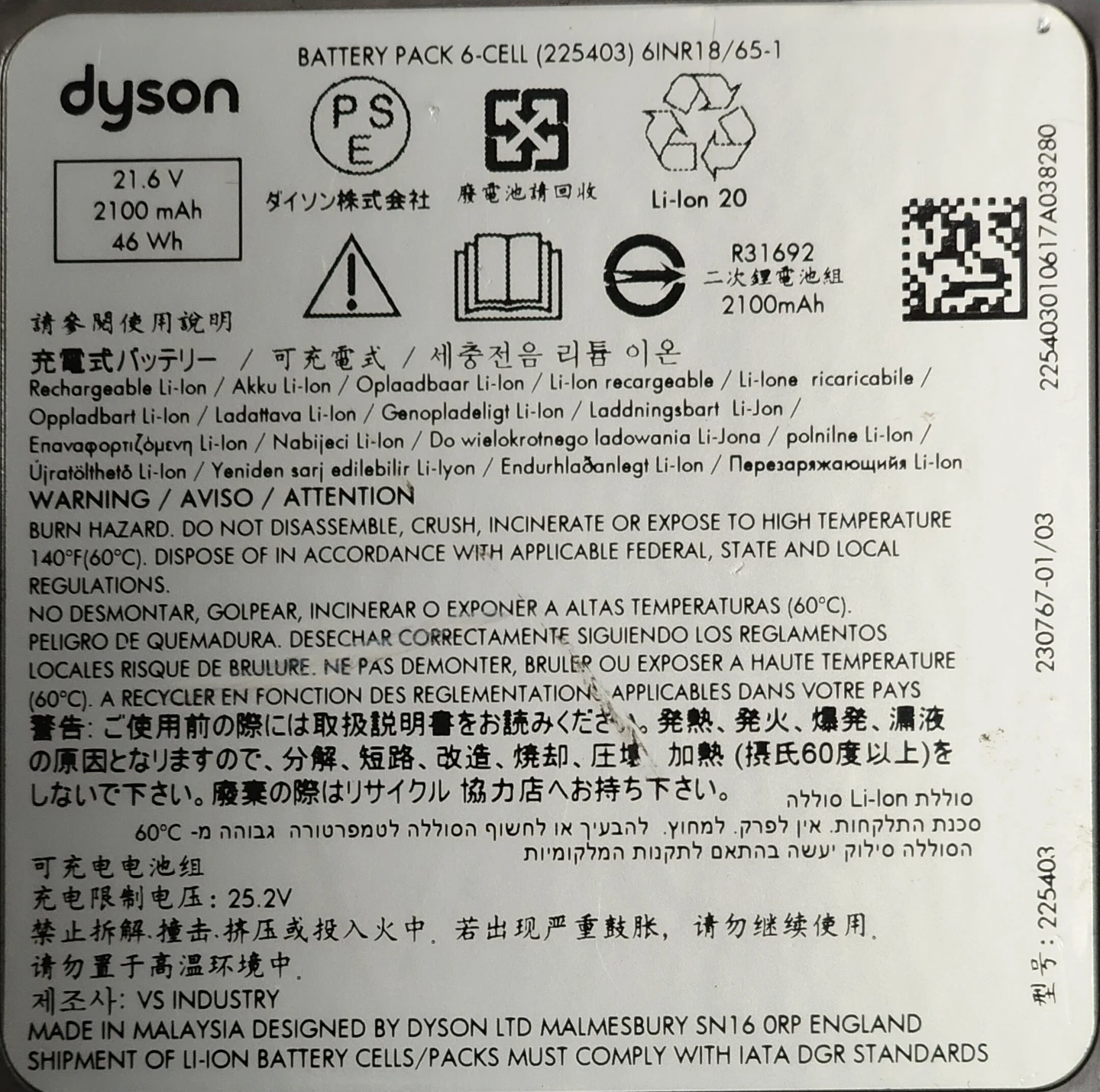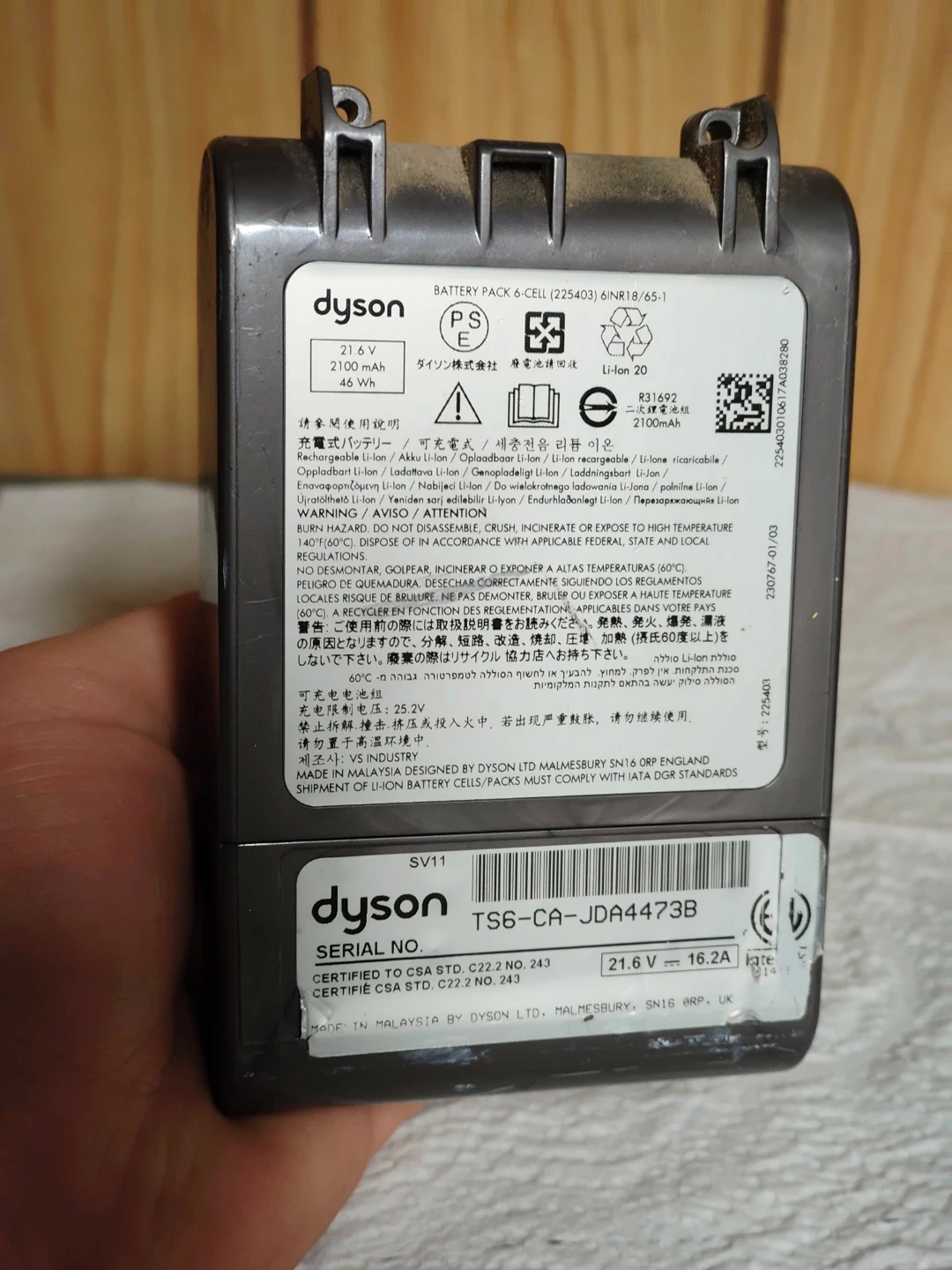 Buy & SellDyson Battery Pack 6-Cell (225403) 21.6V 2100mAhDyson Battery Pack 6-Cell (225403) 21.6V 2100mAh$25Dyson 6-cell battery pack, 21.6V, 2100mAh, 46Wh. Model TS6-CA-JDA4473B. Certified to CSA Std. C22.2 NO. 243. Made in Malaysia by Dyson Ltd.ConditionGoodBrandDysonWHERE TO MEETCollege Street & Bathurst StreetView MapSELLERverifiedIvanTrinity Bellwoods1000+180 reviews0 chats·0 favorites·4 viewsSEND CHAT TO SELLERHi Ivan! I’m interested in your listing.Hi Ivan! I’m interested in your listing.Get the Karrot app to chatSign In to chat
