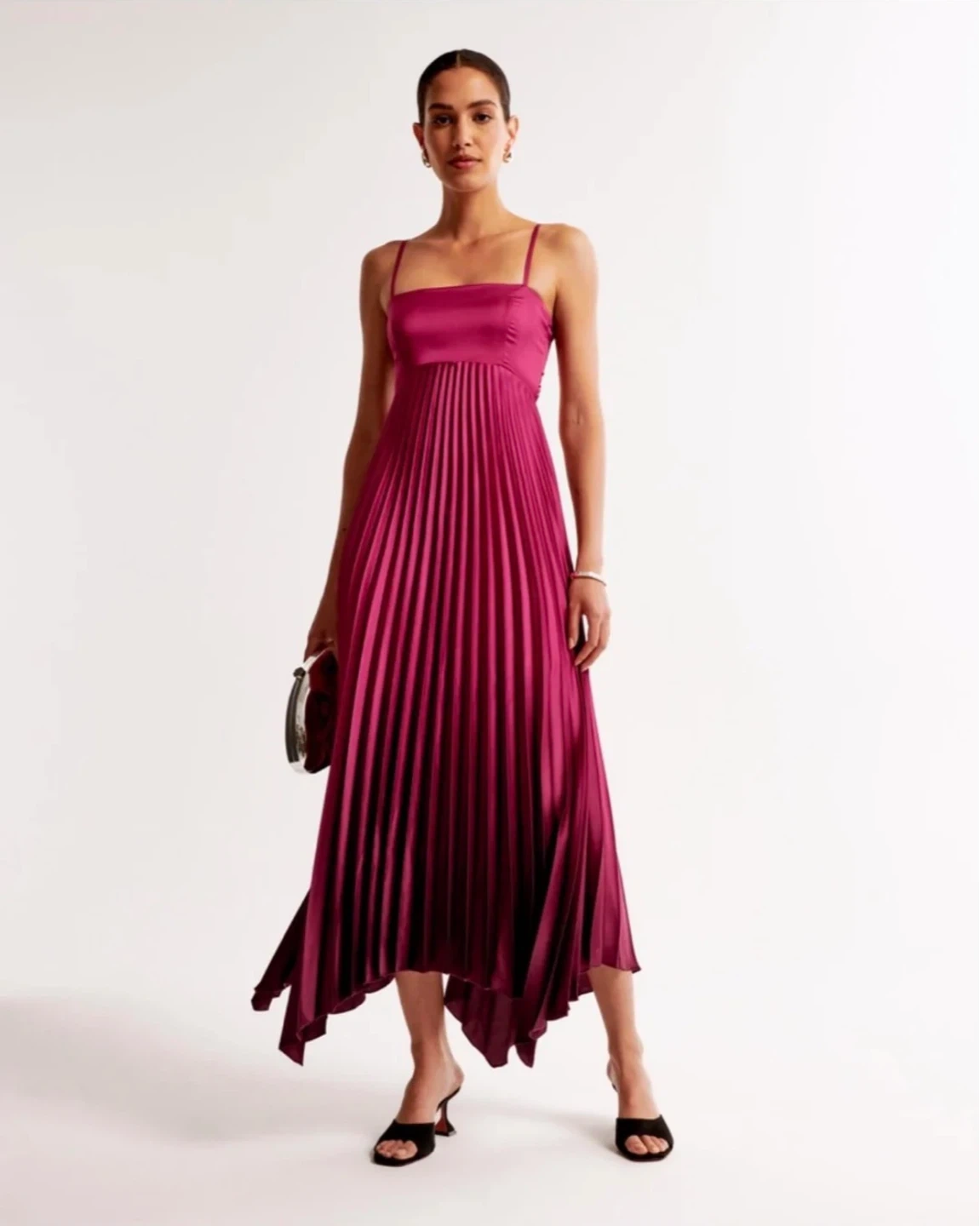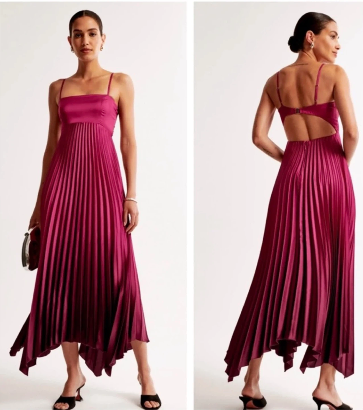 Abercrombie & Fitch Giselle Clasp-Back Pleated Midi Dress