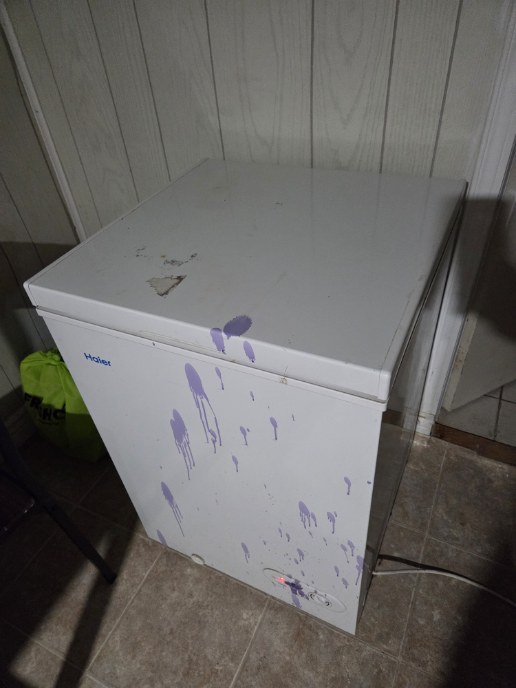 Selling a Haier chest freezer. It's in used condition and could use a bit of cleaning. Perfect for extra storage!