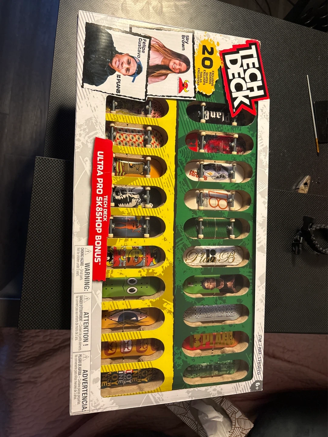This Tech Deck set includes 20 fingerboards with various designs. Includes assorted graphics and some are collaborations with pro skaters. Recommended for ages 6+.