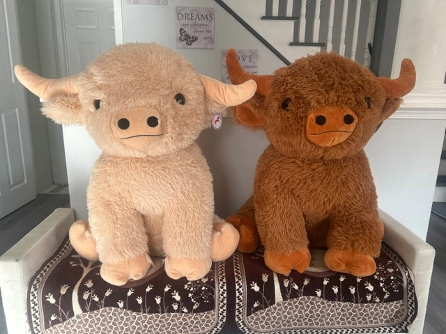 I'm offering two adorable Caravan Softtoys Cow plush toys! These cuddly companions are in great condition, ready to bring joy and warmth to any home. These are soft, huggable, and full of charm, perfect for kids and adults alike. Get ready for delightful snuggles and endless smiles! The original tags are still attached.