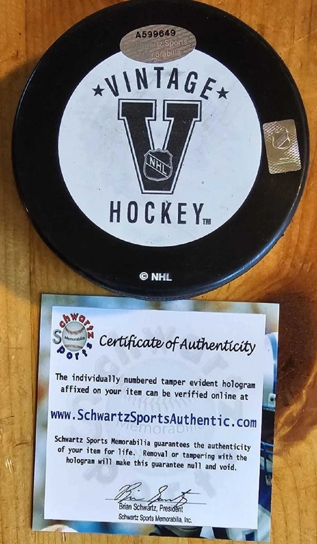 Experience a piece of hockey history with this autographed puck by the legendary Marcel Dionne. Perfect for fans of the Los Angeles Kings and collectors of sports memorabilia, this puck comes with a certificate of authenticity, ensuring that it's an original, genuine item. Signed by Dionne himself, it's a remarkable addition to any collection. Crafted for enthusiasts of the sport, this puck embodies the spirit of hockey and the legacy of one of its greats. Whether displayed in your home, office, or given as a gift to a dedicated hockey fan, it's a tangible piece of sports heritage that celebrates the career of an NHL icon.