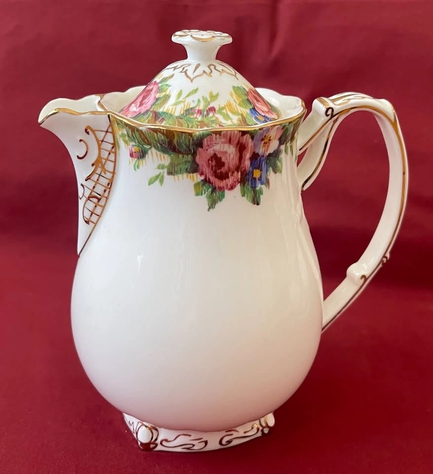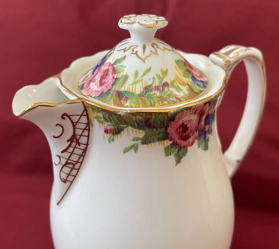 Extremely rare, Double Warrant Backstamped (1937-1952) set. All pieces are in perfect condition with no chips or cracks. The set includes: Creamer, Sugar (with lid), Teapot (with lid) - extremely rare, Coffee/Cocoa pot (with lid) - extremely rare. Let me know if you're interested!