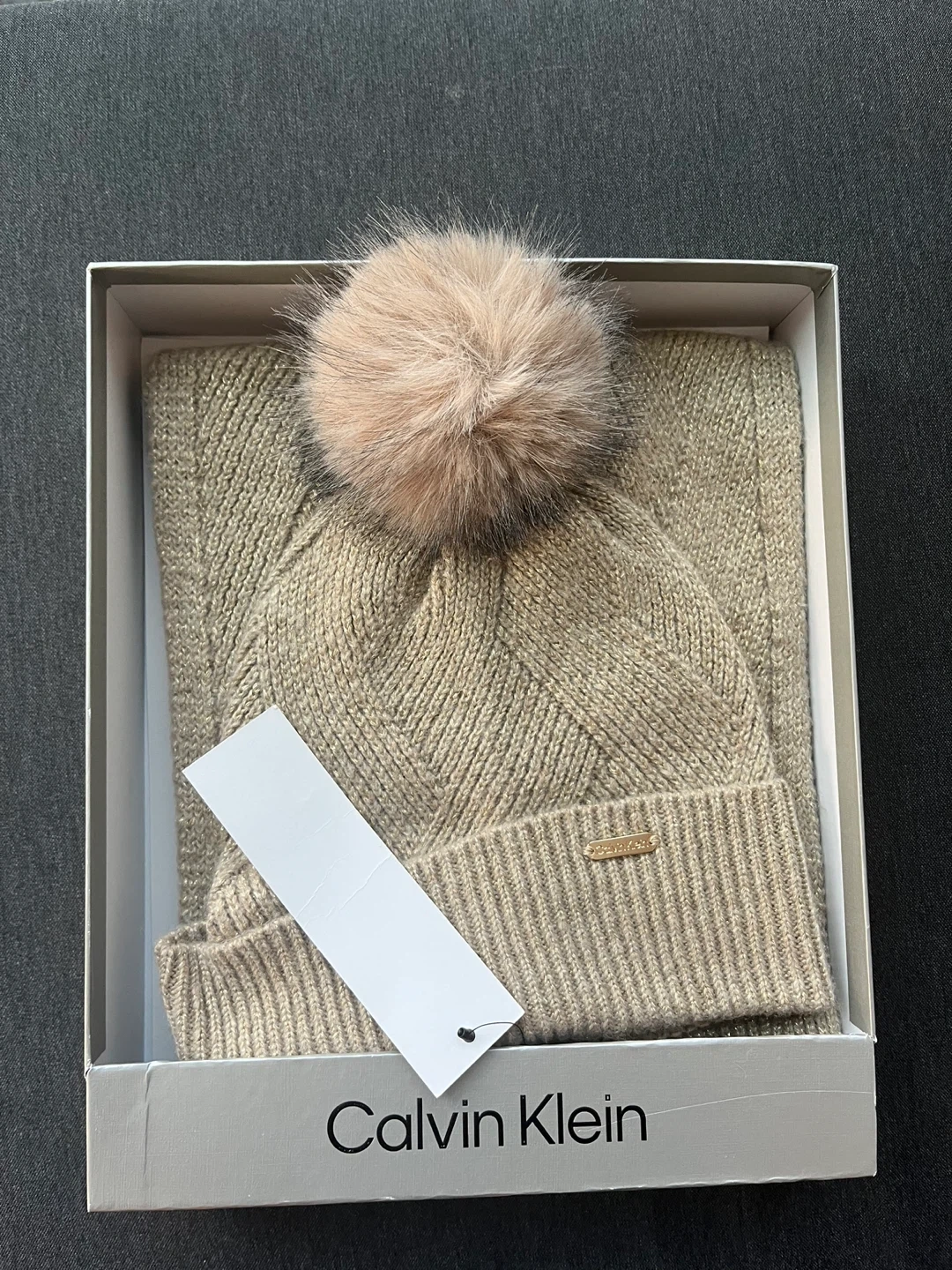 Selling a brand new Calvin Klein hat and scarf set! The set comes in its original box. The tag shows the MSRP was $108