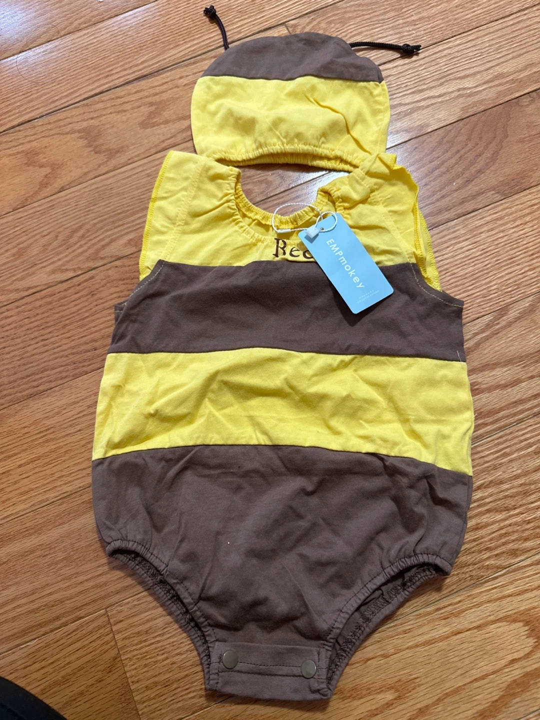 (Brand New)baby bee costume with matching hat. It's yellow and brown striped for a sweet buzzing look. Made from soft fabric for baby's comfort. 🧡