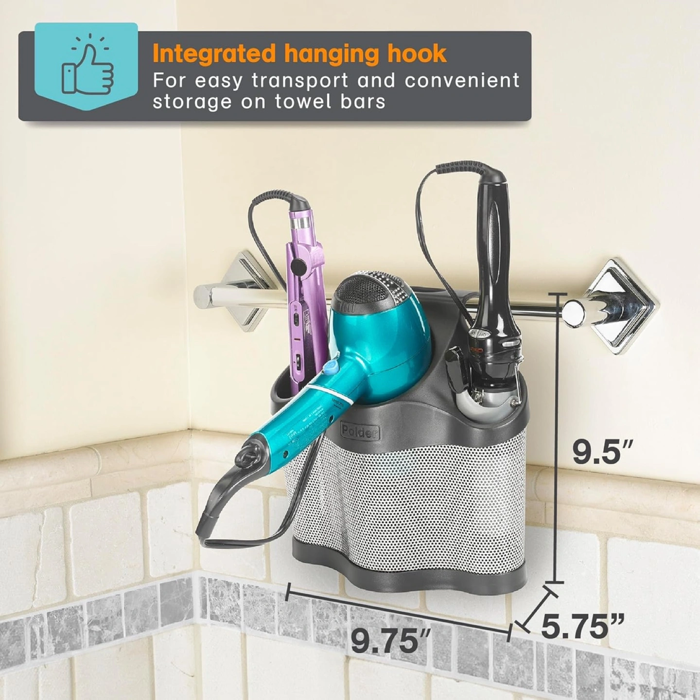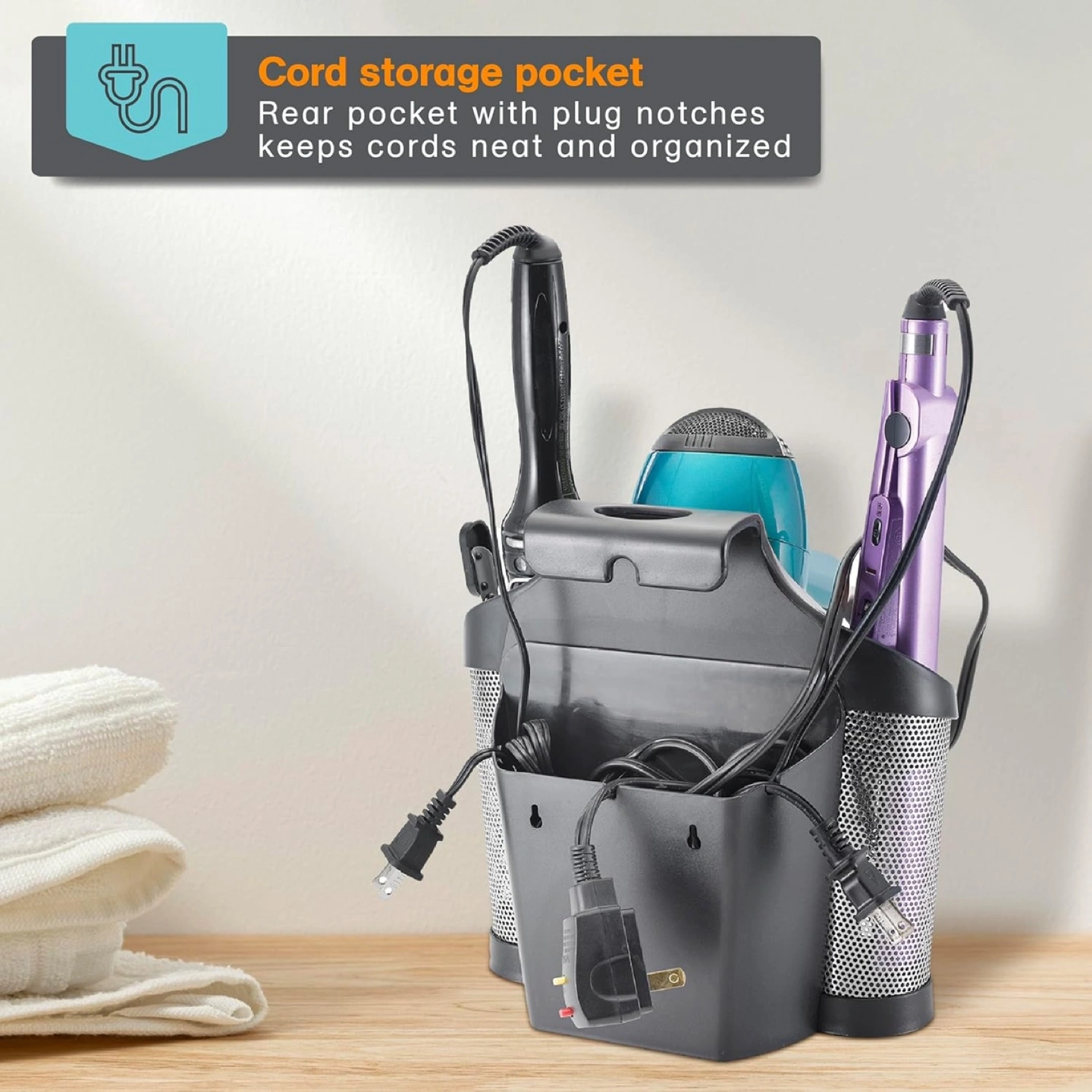 Selling this handy hot tools holder for holder hairdryers, flat irons, curling irons. Can mount to the wall, hang on your towel rail or sit on the counter. Sturdy. I just haven't used it.