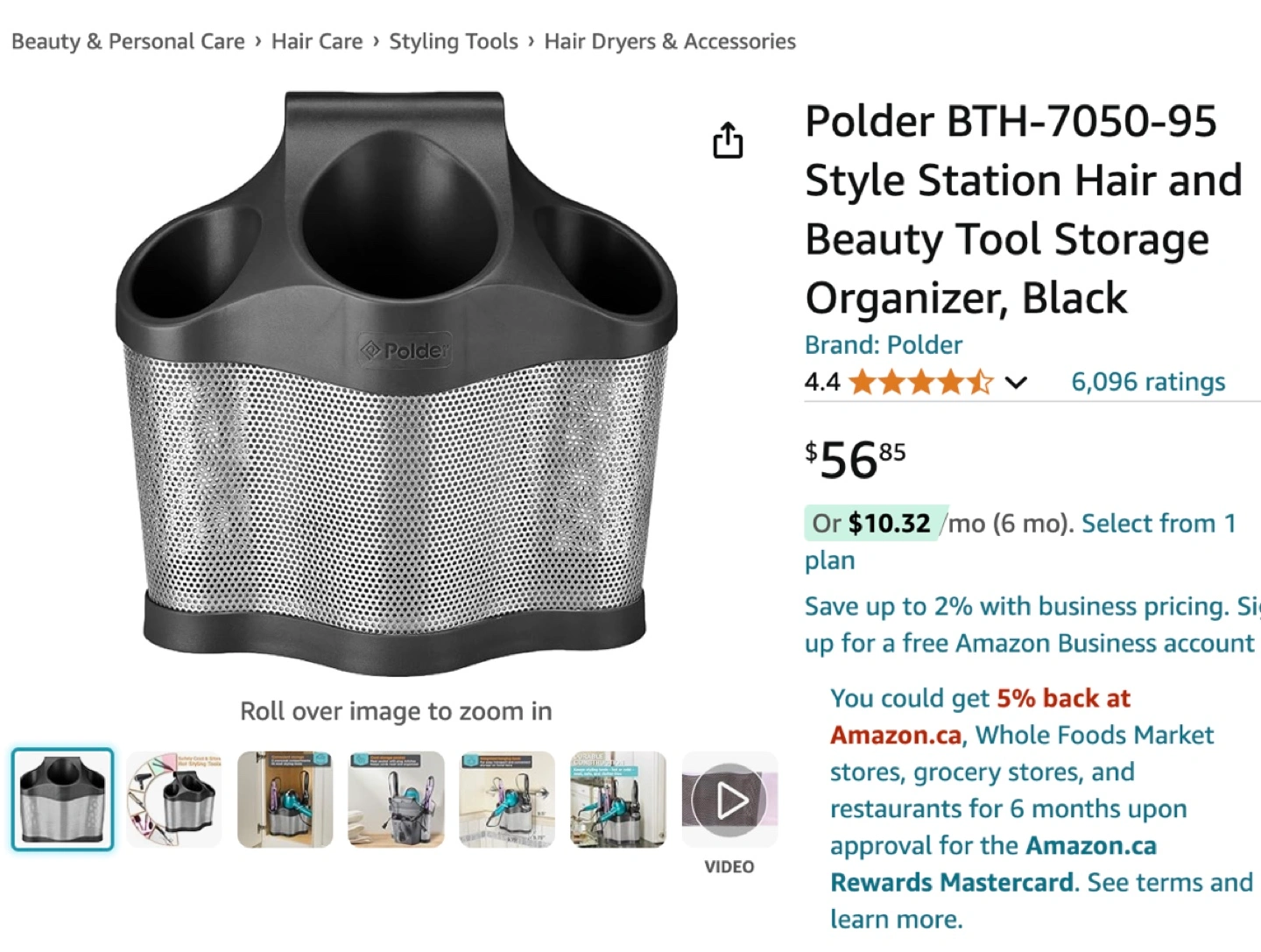 Polder hair and Beauty Tool Storage Organizer, Black