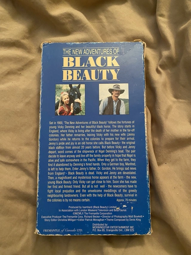Relive the magic with The New Adventures of Black Beauty on VHS, a timeless tale captured on video! This copy shows its age with some wear on the cover, a testament to the many adventures it has embarked on. A charming addition to any collection, ready to bring joy to a new generation of viewers. Own a piece of nostalgia! Embrace the imperfections and enjoy a classic story. If the ad is up, it's still available. Cash accepted. As is, no refunds.