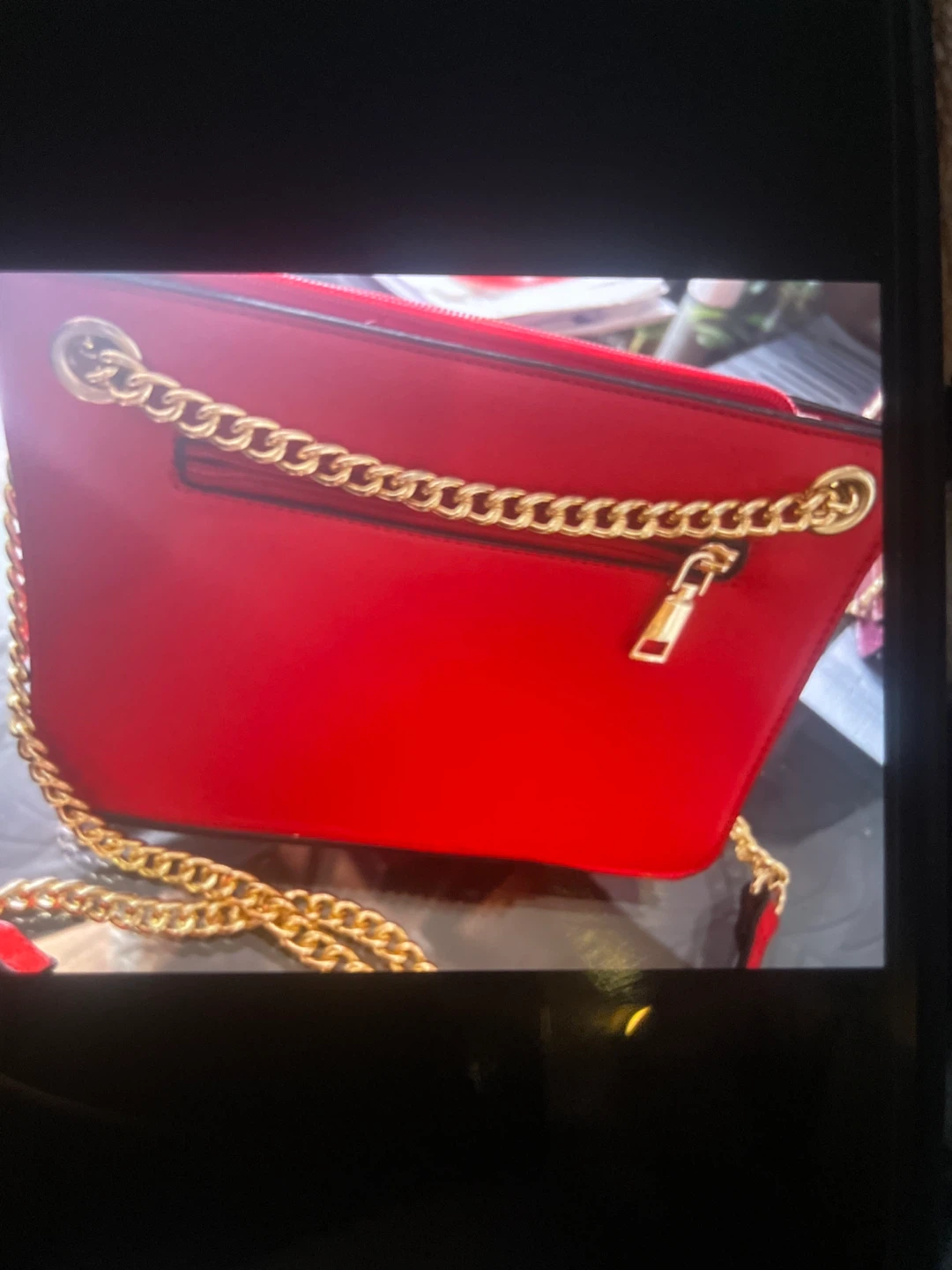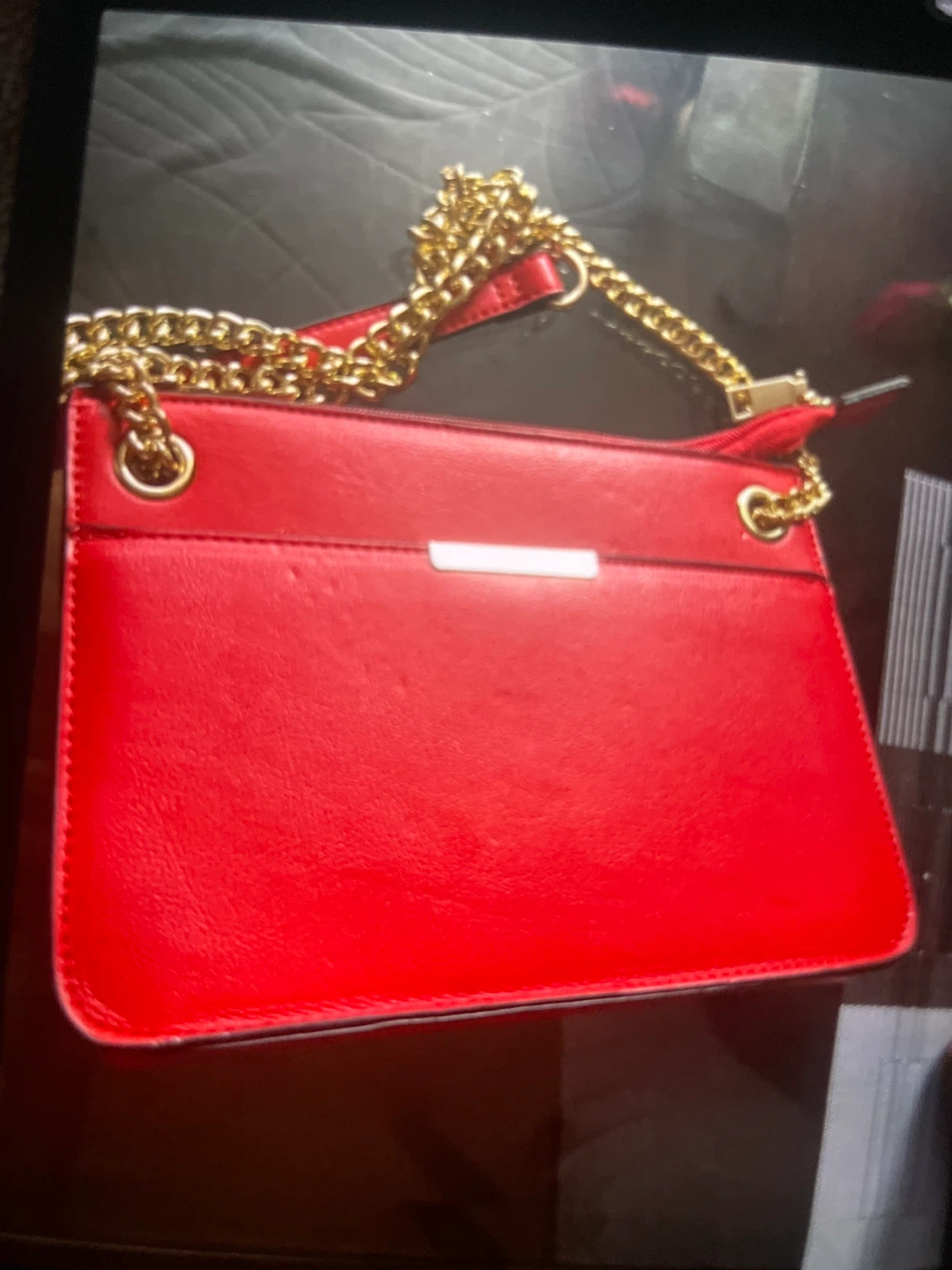 Red Crossbody Purse with Gold Chain Strap