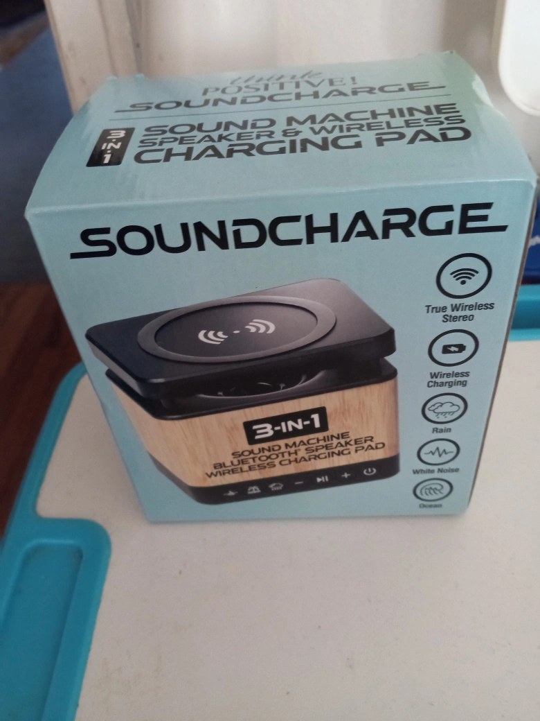 BRAND NEW!! Selling a Soundcharge 3-in-1 sound machine speaker and wireless charging pad. It's a sound machine, speaker, and wireless charging pad all in one! It's in excellent condition and comes in the original box.