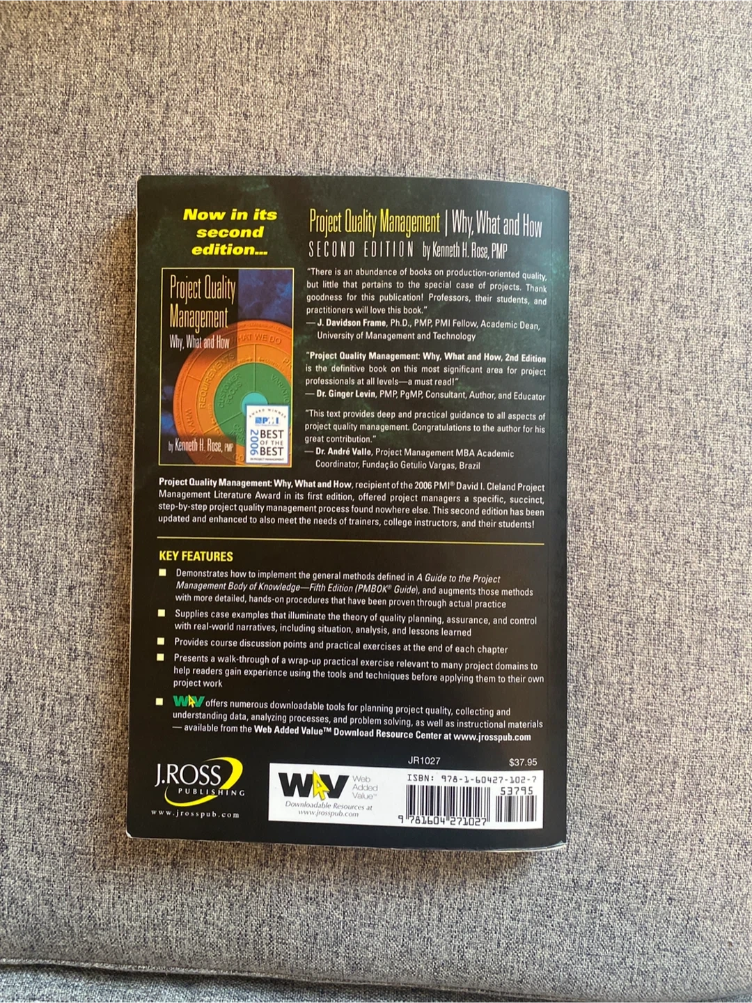 Project Quality Management: Why, What and How, Second Edition demonstrates how to implement the general methods defined in A Guide to the Project Management Body of Knowledge—Fifth Edition (PMBOK Guide) and augments those methods with more detailed, hands-on procedures that have been proven through actual practice. This edition presents case examples that illuminate the theory of quality planning, assurance, and control with real-world narratives, including situation, analysis, and lessons learned. It also provides course discussion points and practical exercises at the end of each chapter. In its first edition, Project Quality Management was the recipient of the 2006 PMI David I. Cleland Project Management Literature Award. The award-winner offered project managers a specific, succinct, step-by-step project quality management process found nowhere else. This second edition features updated and enhanced material that meets the needs of practitioners, trainers, college instructors, and their students. The updated edition is current as of 2019.