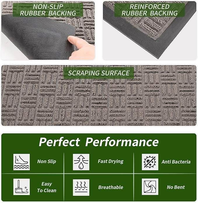 Fireosma Durable Low Profile Floor Mat, Indoor and Outdoor, Non Slip Rug, Easy to Clean Welcome Mat, for High Traffic Areas, Entryway, Patio (36x24", Grey)