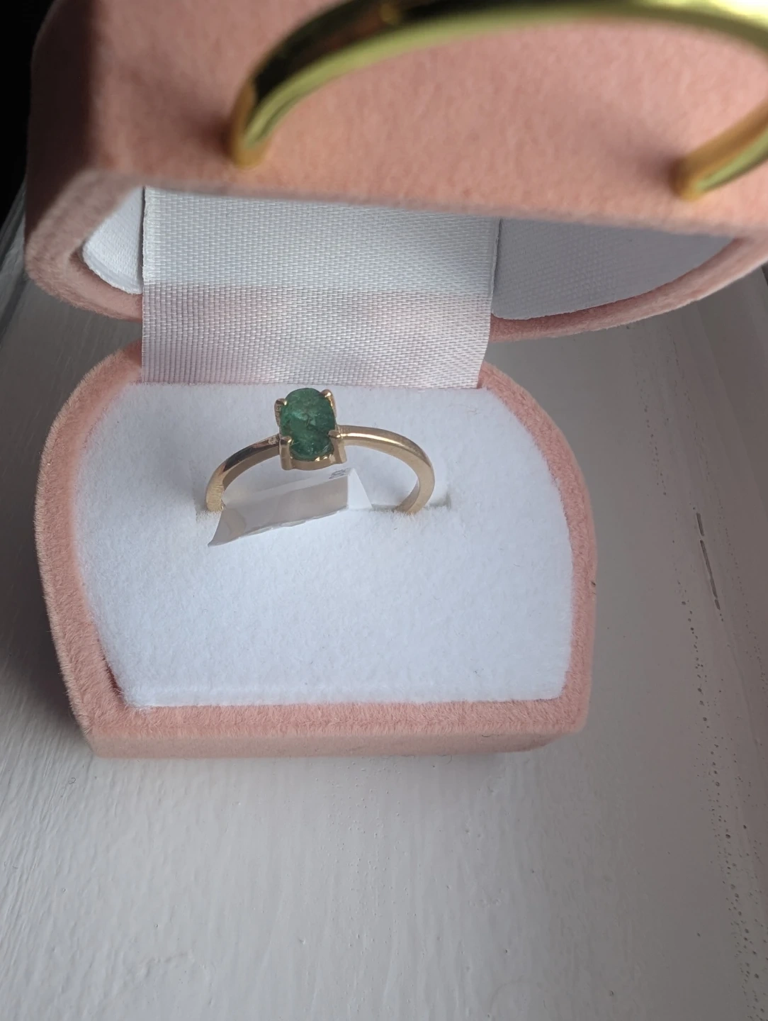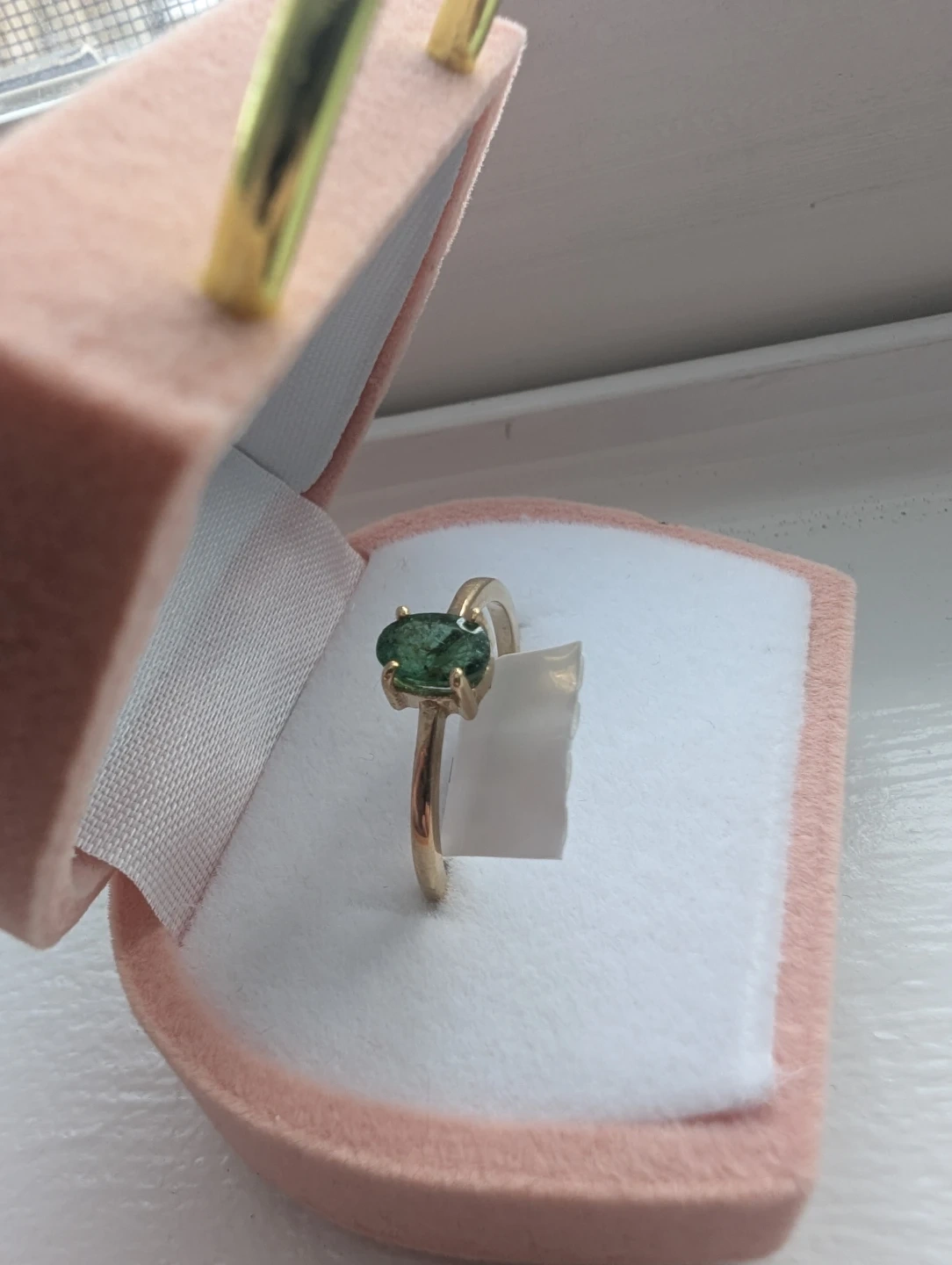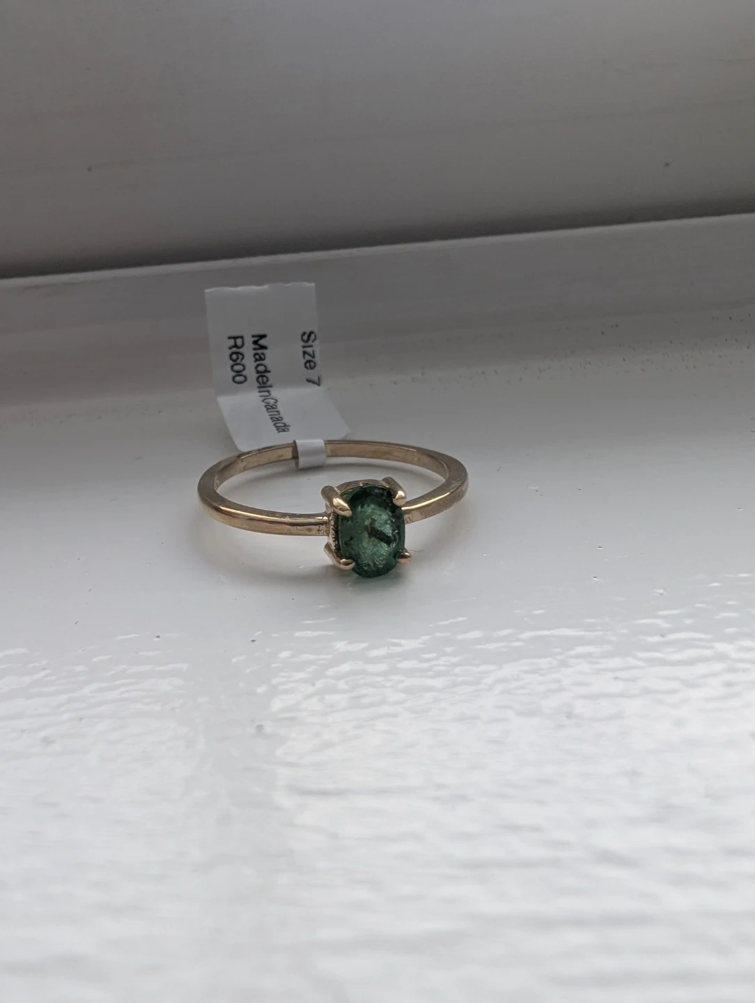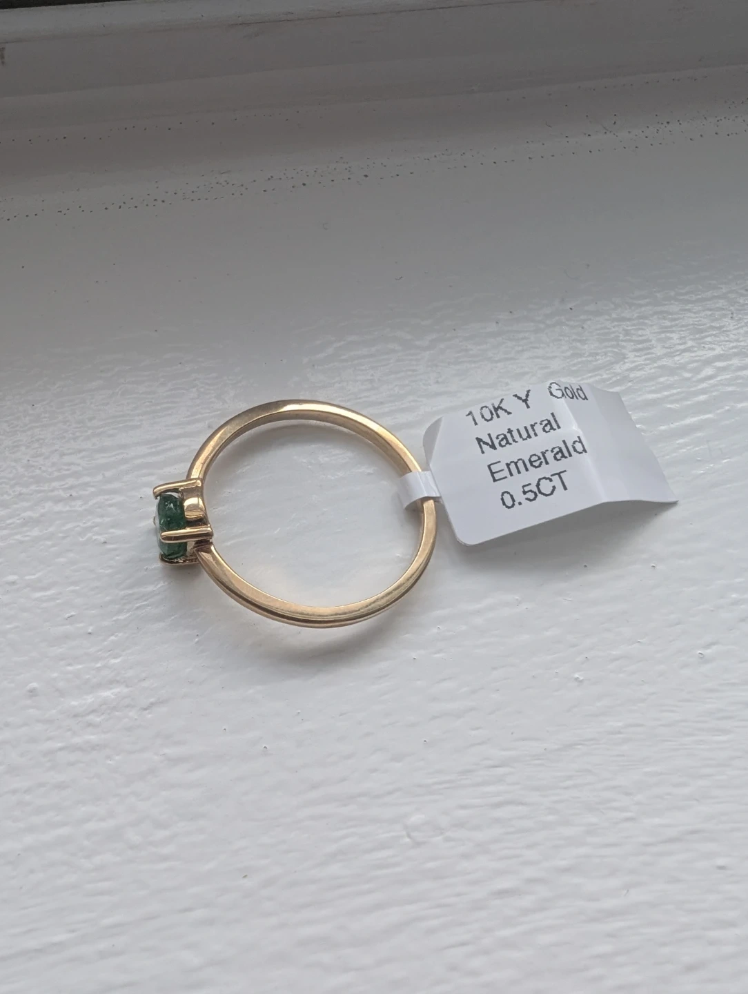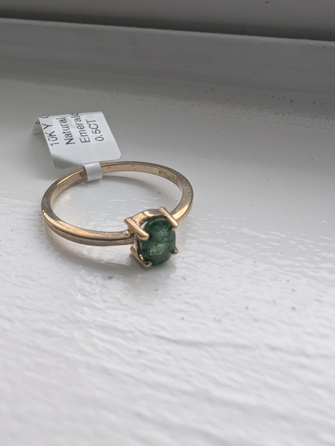Brand new 10kt yellow gold natural emerald gemstone ring for sale. One oval cut natural emerald genuine gem stone 0.50ct carats. Ring size 7, made in Canada, May birthstone. Retail value $1800, selling for $750 FIRM. Comes with appraisal.