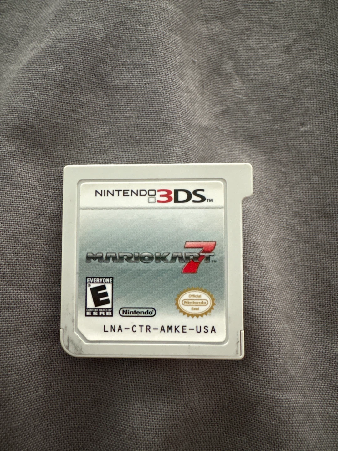 This is the Mario Kart 7 game cartridge for the Nintendo 3DS. It's rated E for Everyone by the ESRB. Region: USA. Loose cartridge, meaning I do not have the case.