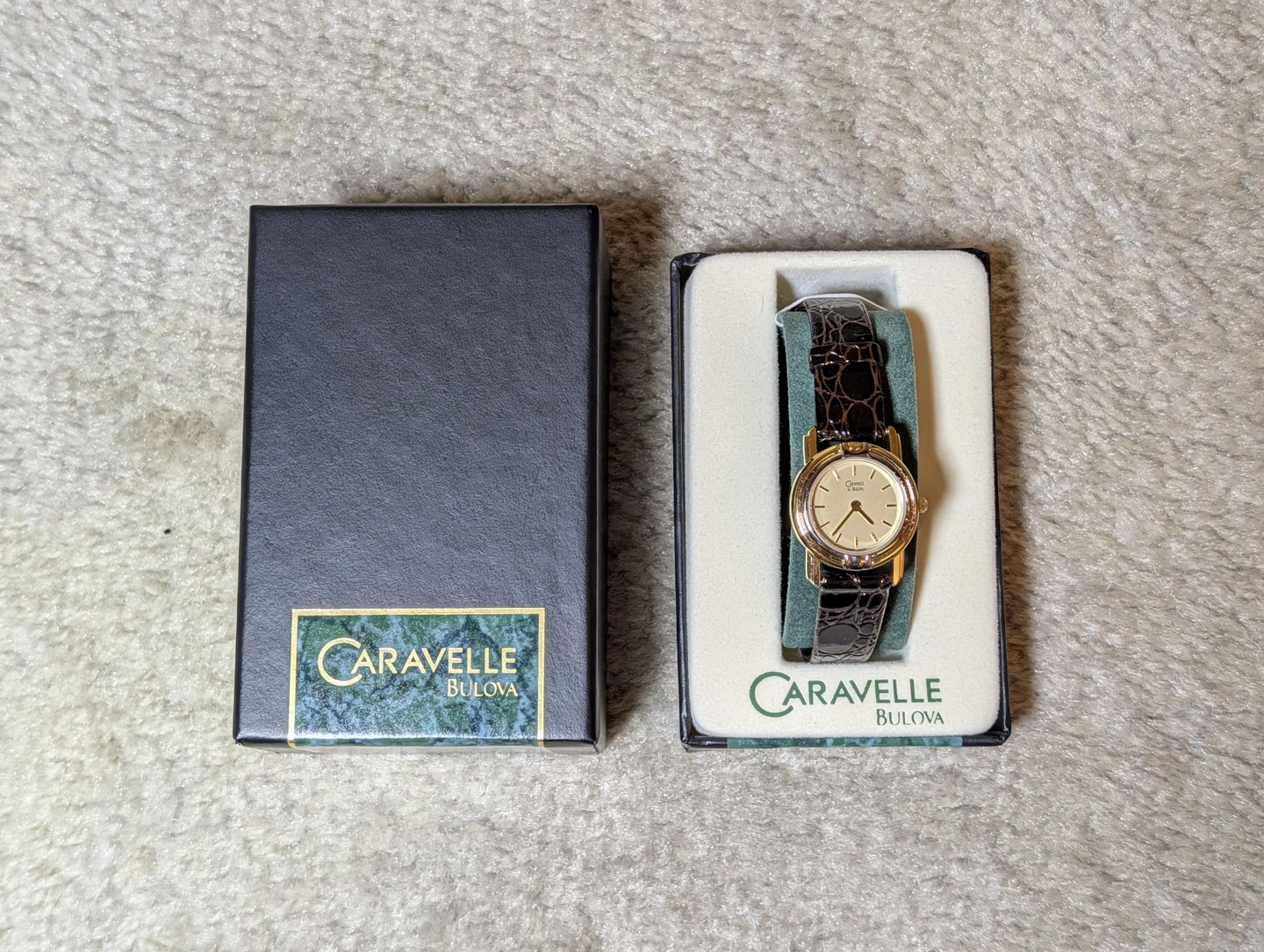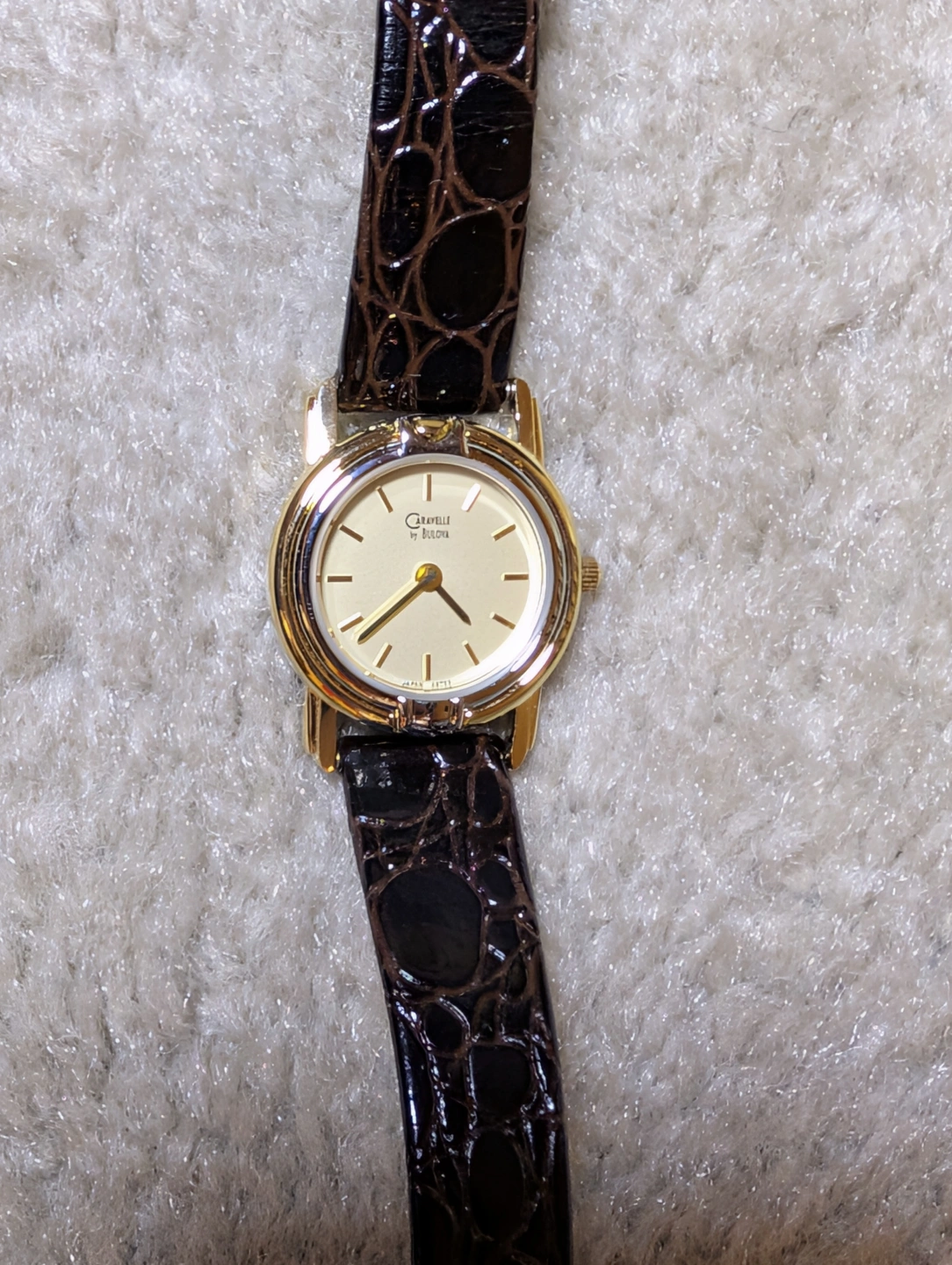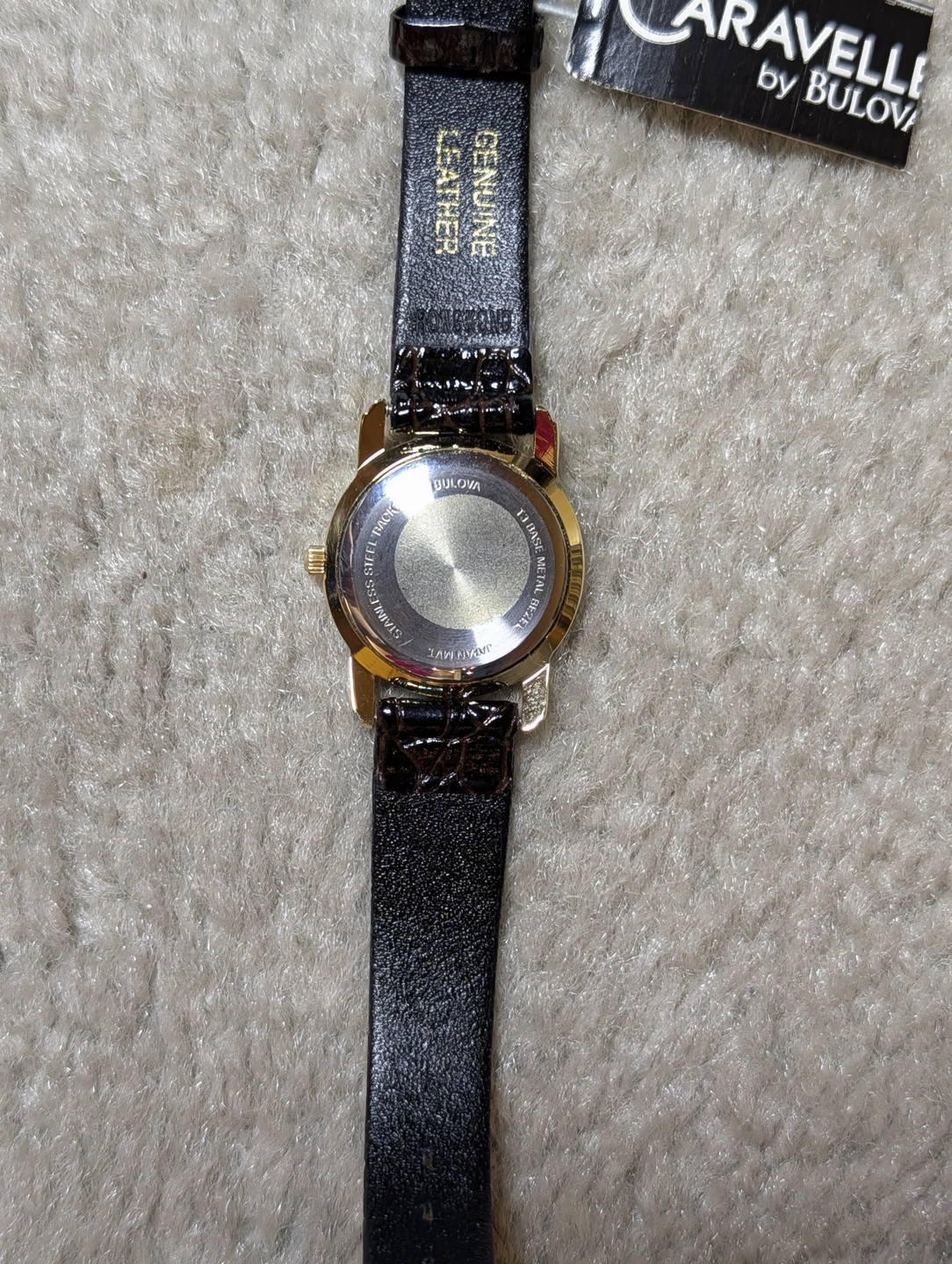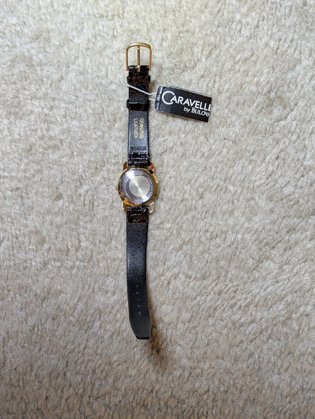 Caravelle by Bulova 20mm Gold Tone Watch - Brown Leather Band