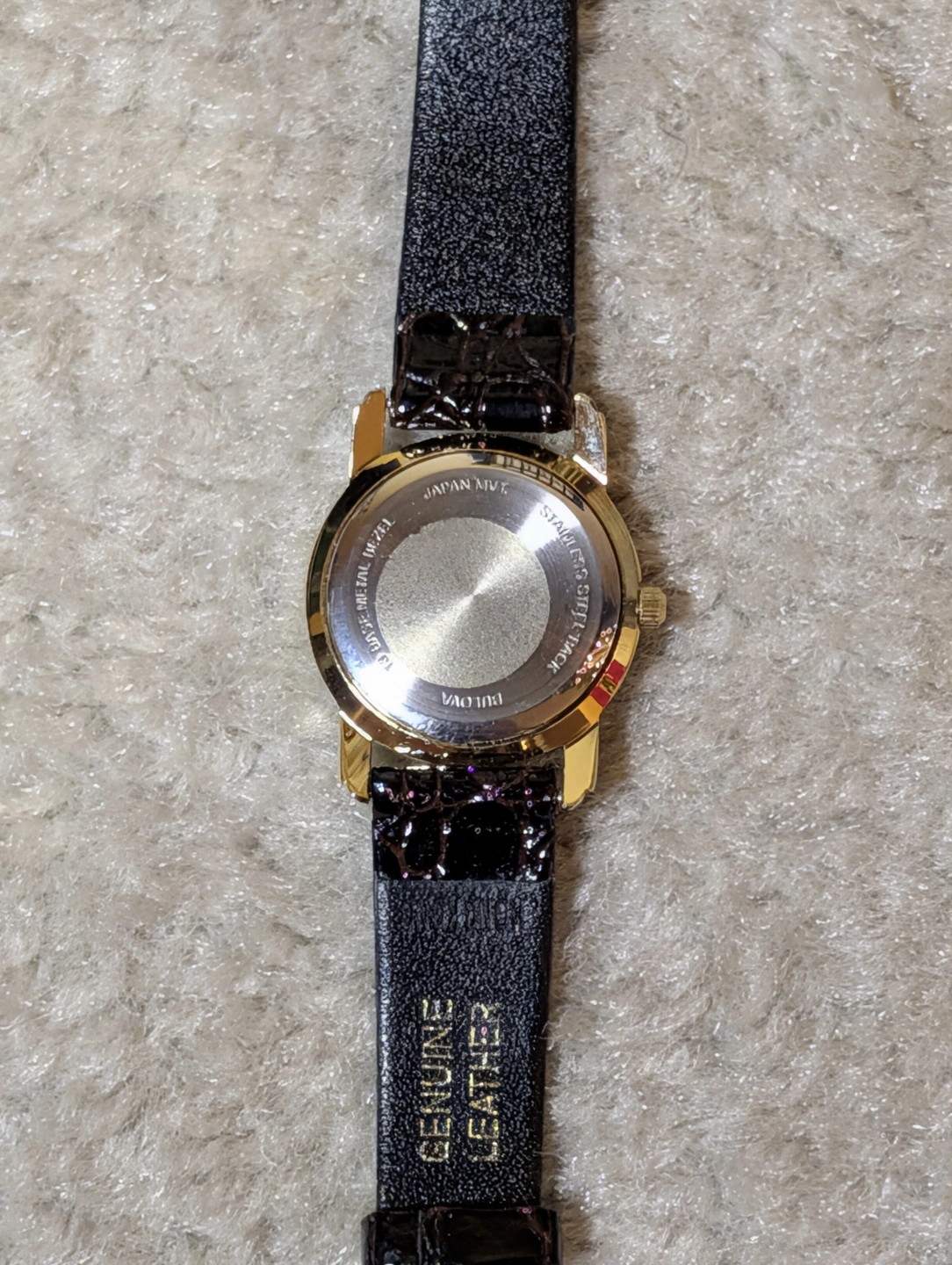 No visible scratches on watch face. No visible creasing, edge wear, or worn buckle holes on leather strap,