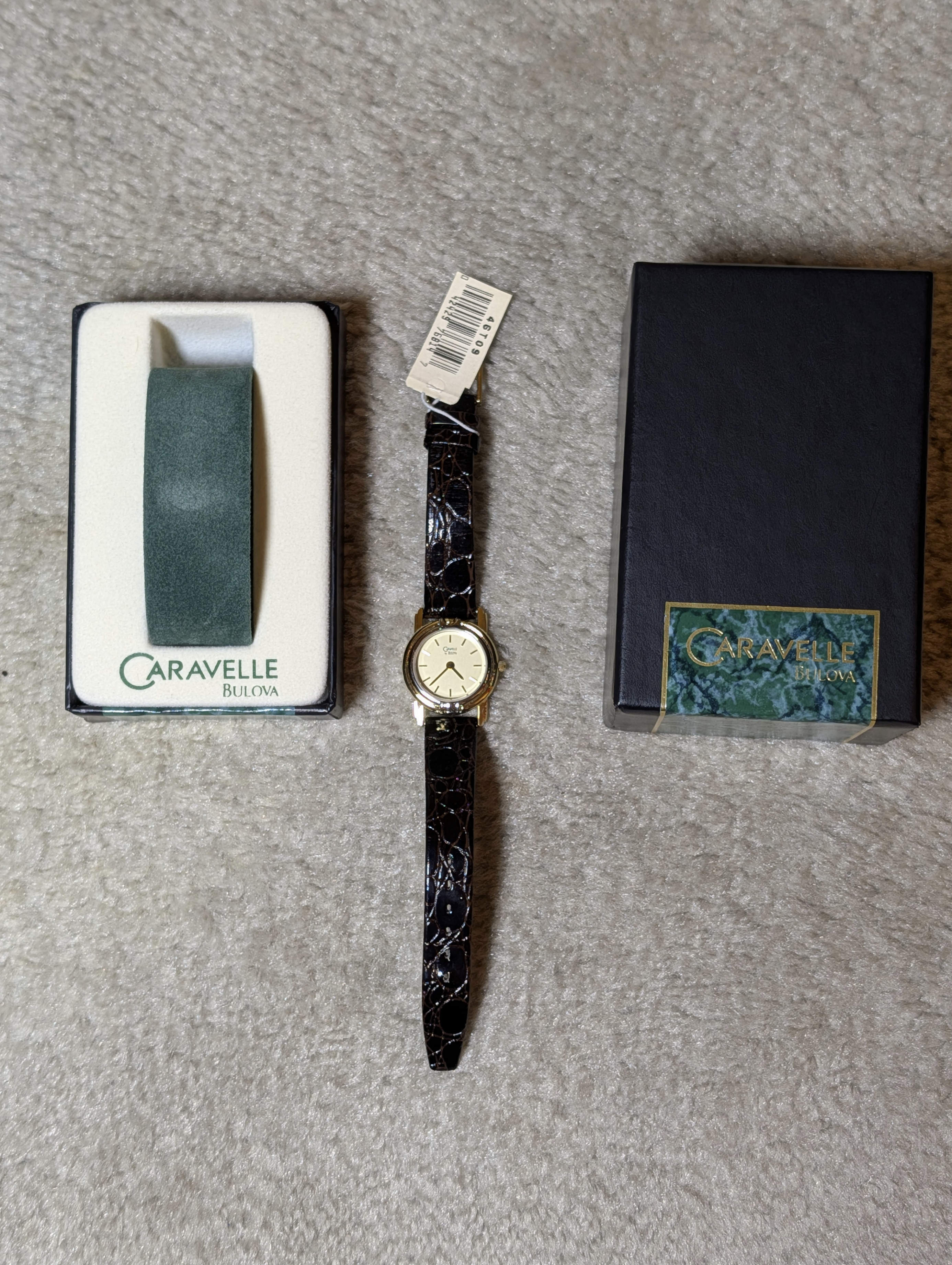 Caravelle by Bulova 20mm Gold Tone Watch - Brown Leather Band