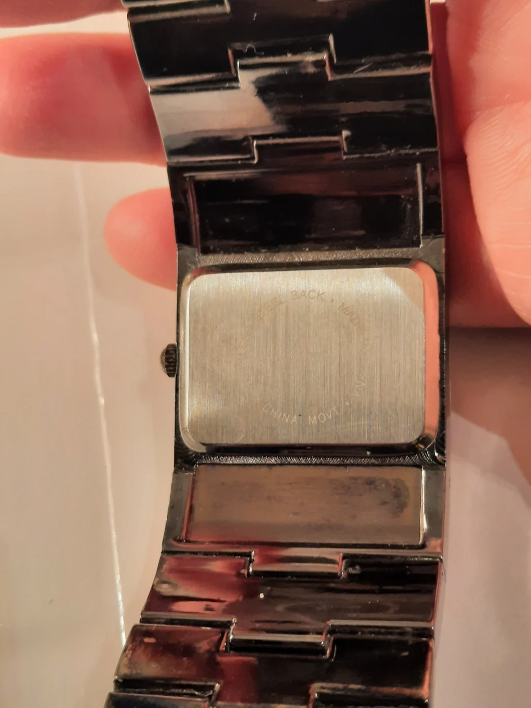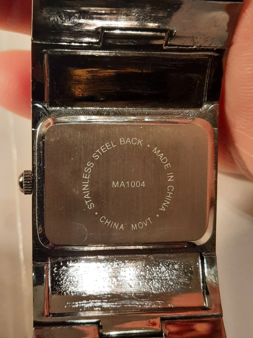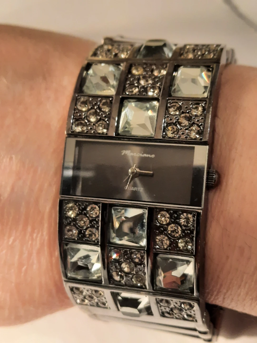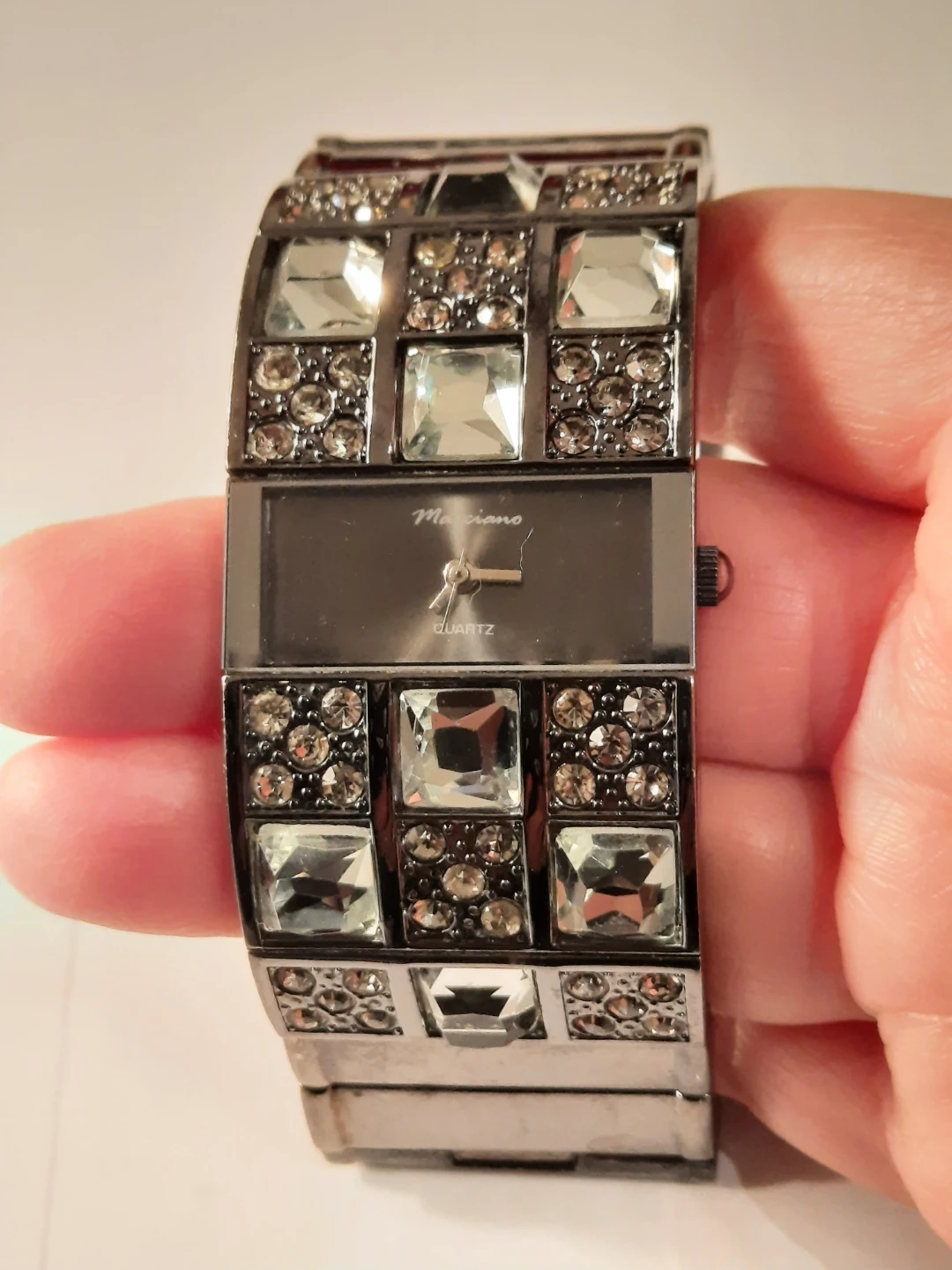 Sparkling watch with a rectangular face and a stone-encrusted band. It features a quartz movement. Stainless steel back made in China.not new,show few wares.but looking great.clen condition.