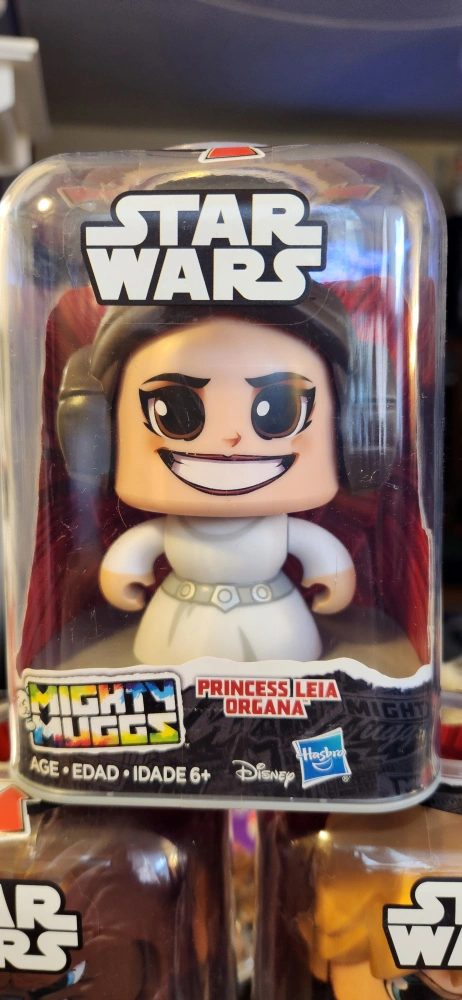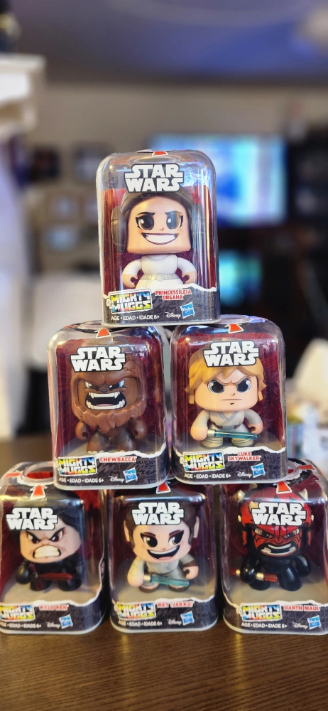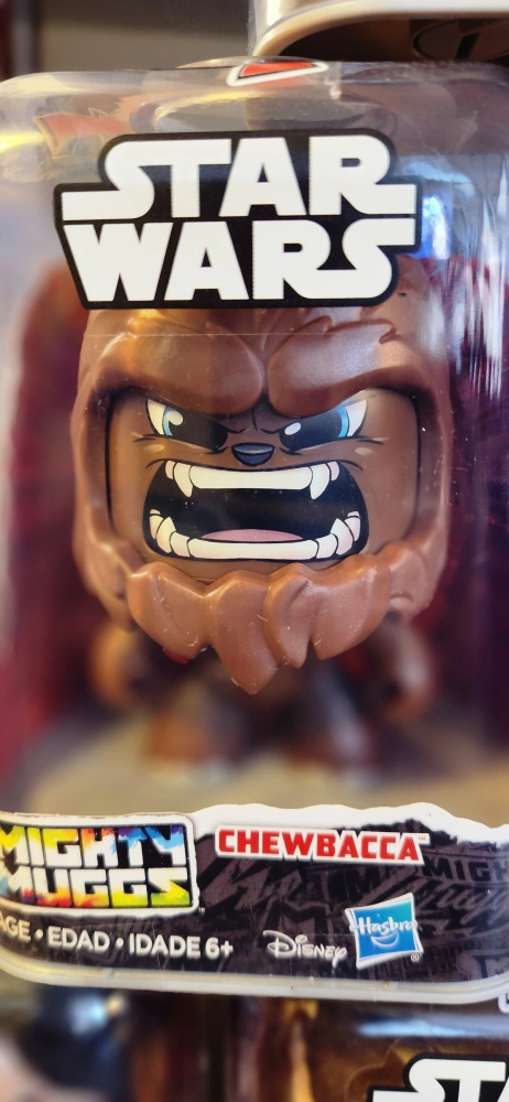 Star Wars Mighty Muggs figures. Characters include Chewbacca, Luke Skywalker, Princess Leia Organa, Kylo Ren, Darth Maul and Darth Vader. New in package. Suitable for ages 6+.