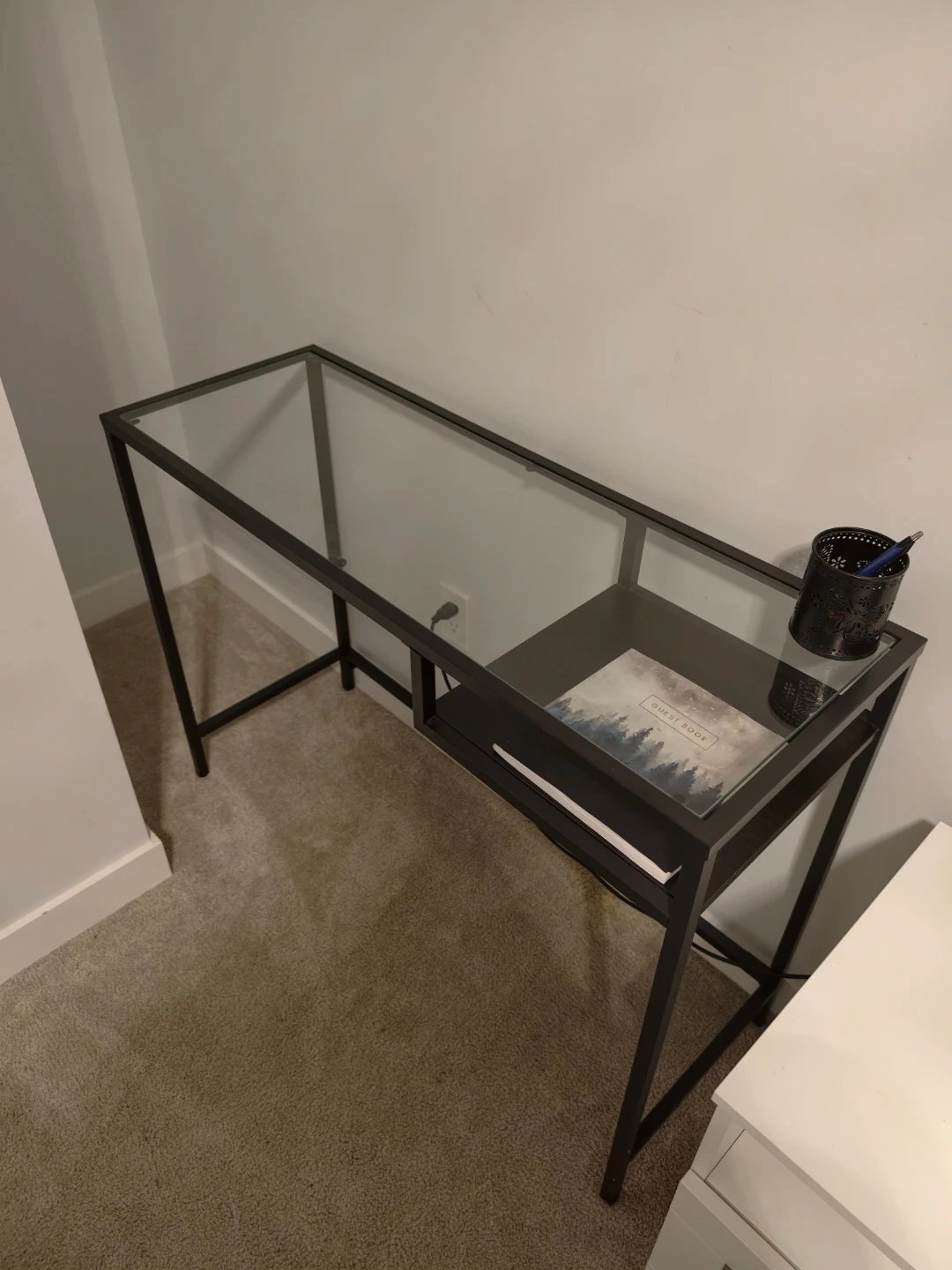 Glass Top Console Table with Shelf