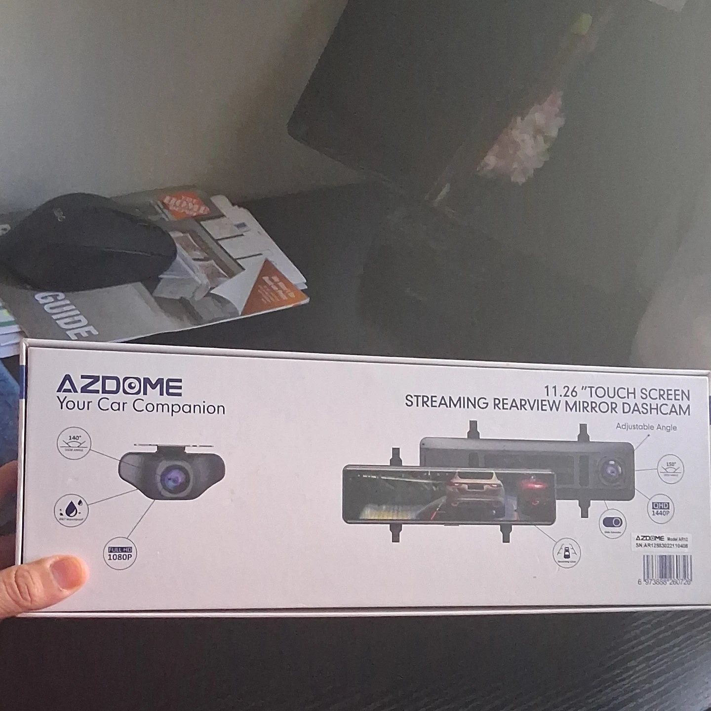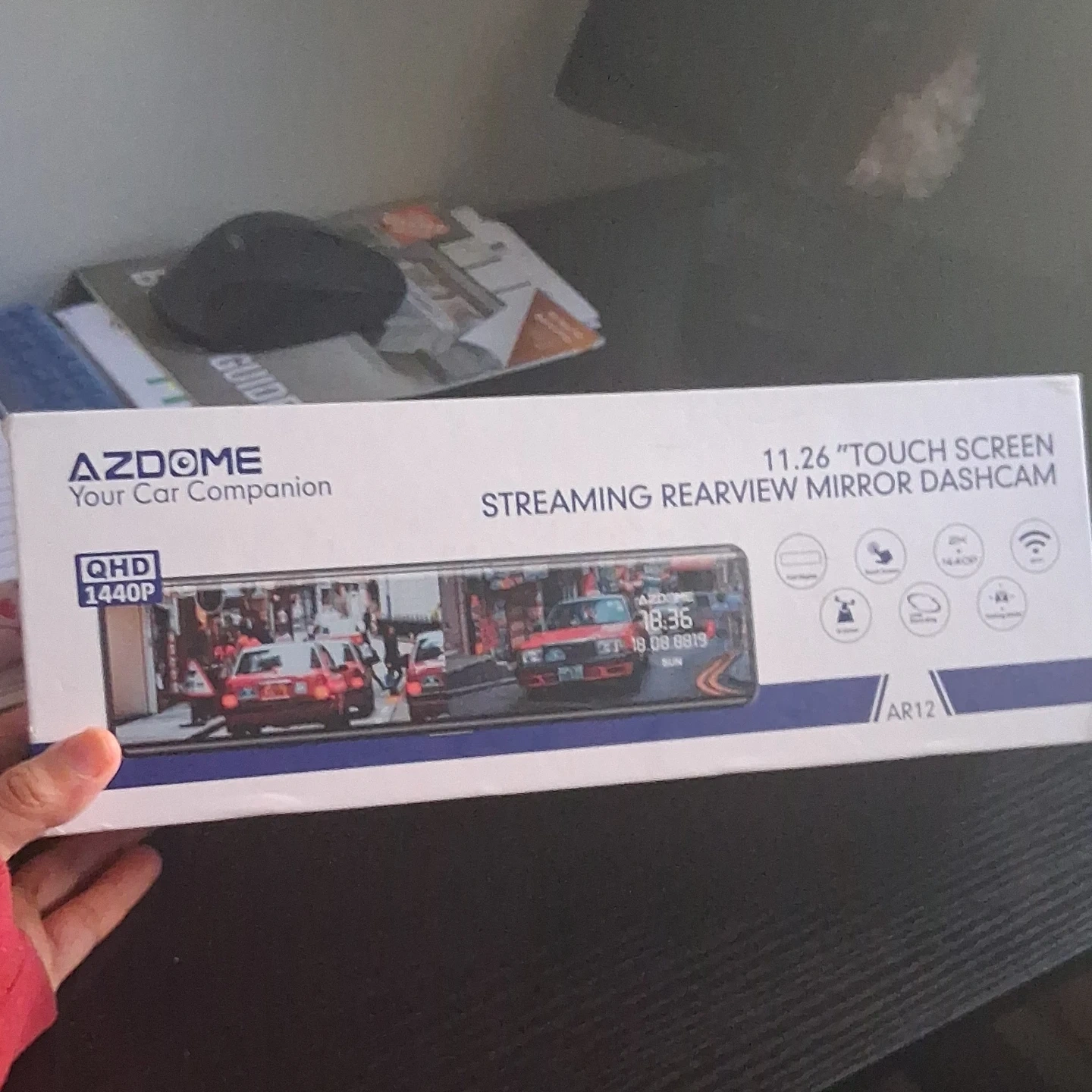 This AZDOME AR12 dashcam features an 11.26" touch screen and QHD 1440P resolution. It's a streaming rearview mirror dashcam with 24 hours parking mode capability. It also includes Super Night Vision.