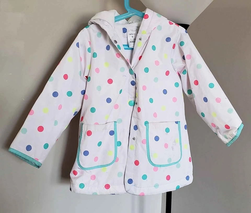 Buy & SellCarters Girls Jacket Size 6Carters Girls Jacket Size 6$20Carters girls fleece lined spring rain jacket, Size 6. White with polka dots. Snaps, no zipper. Cash only.WHERE TO MEETCheck LocationView MapSELLERKarlLynden Hills100 reviews0 chats·0 favorites·0 viewsSEND CHAT TO SELLERHi Karl! I’m interested in your listing.Hi Karl! I’m interested in your listing.Get the Karrot app to chatSign In to chat