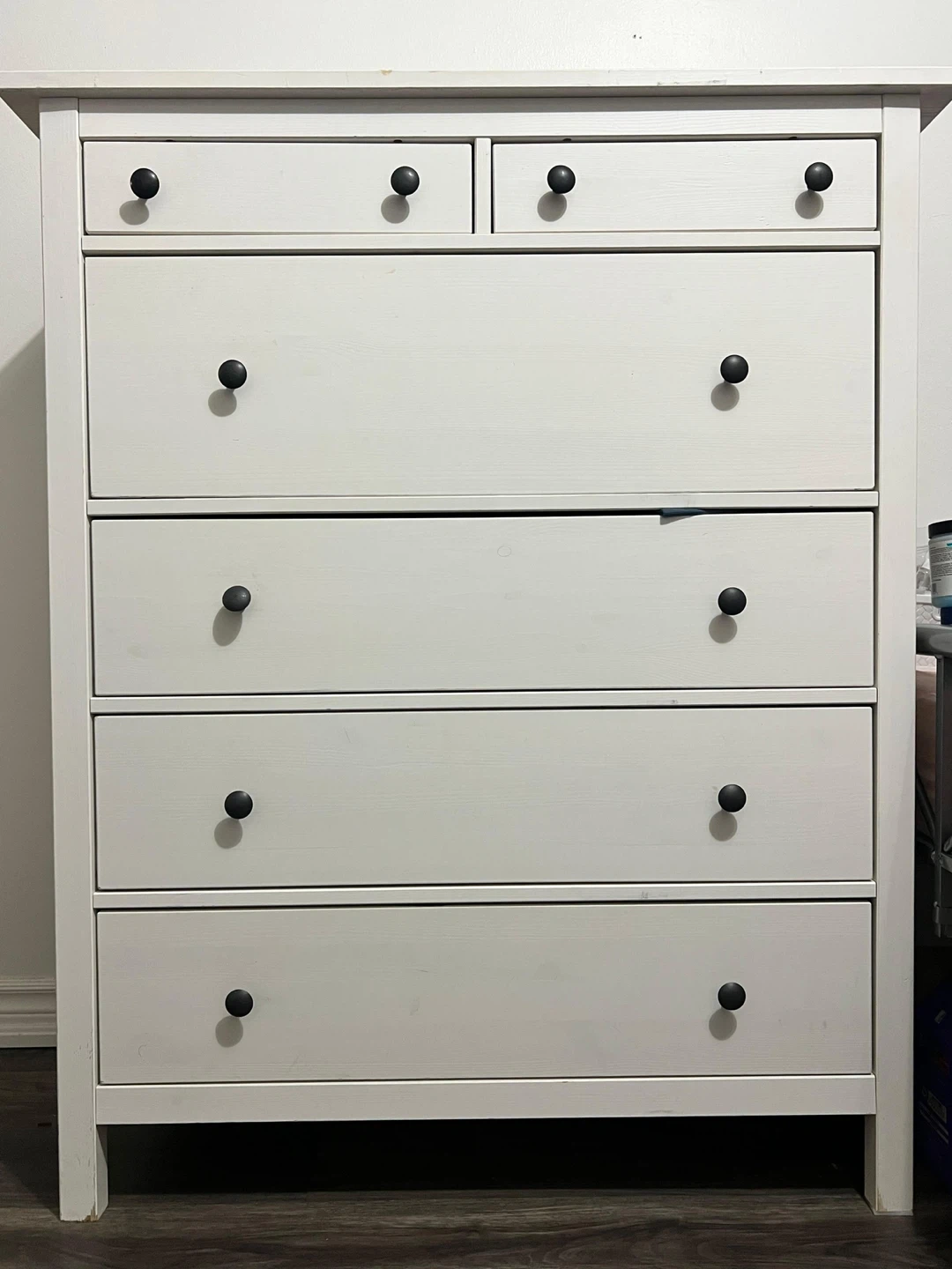 Buy & SellIKEA Hemnes White Chest of 6 DrawersIKEA Hemnes White Chest of 6 Drawers$231Selling a white IKEA Hemnes chest of 6 drawers. It's in good condition and ready for a new home! It's perfect for adding storage to any room.ConditionLike newWHERE TO MEETFinch and KiplingView MapSELLERverifiedKoiMount Olive600 reviews3 chats·10 favorites·213 viewsSEND CHAT TO SELLERHi Koi! I’m interested in your listing.Hi Koi! I’m interested in your listing.Get the Karrot app to chatSign In to chat