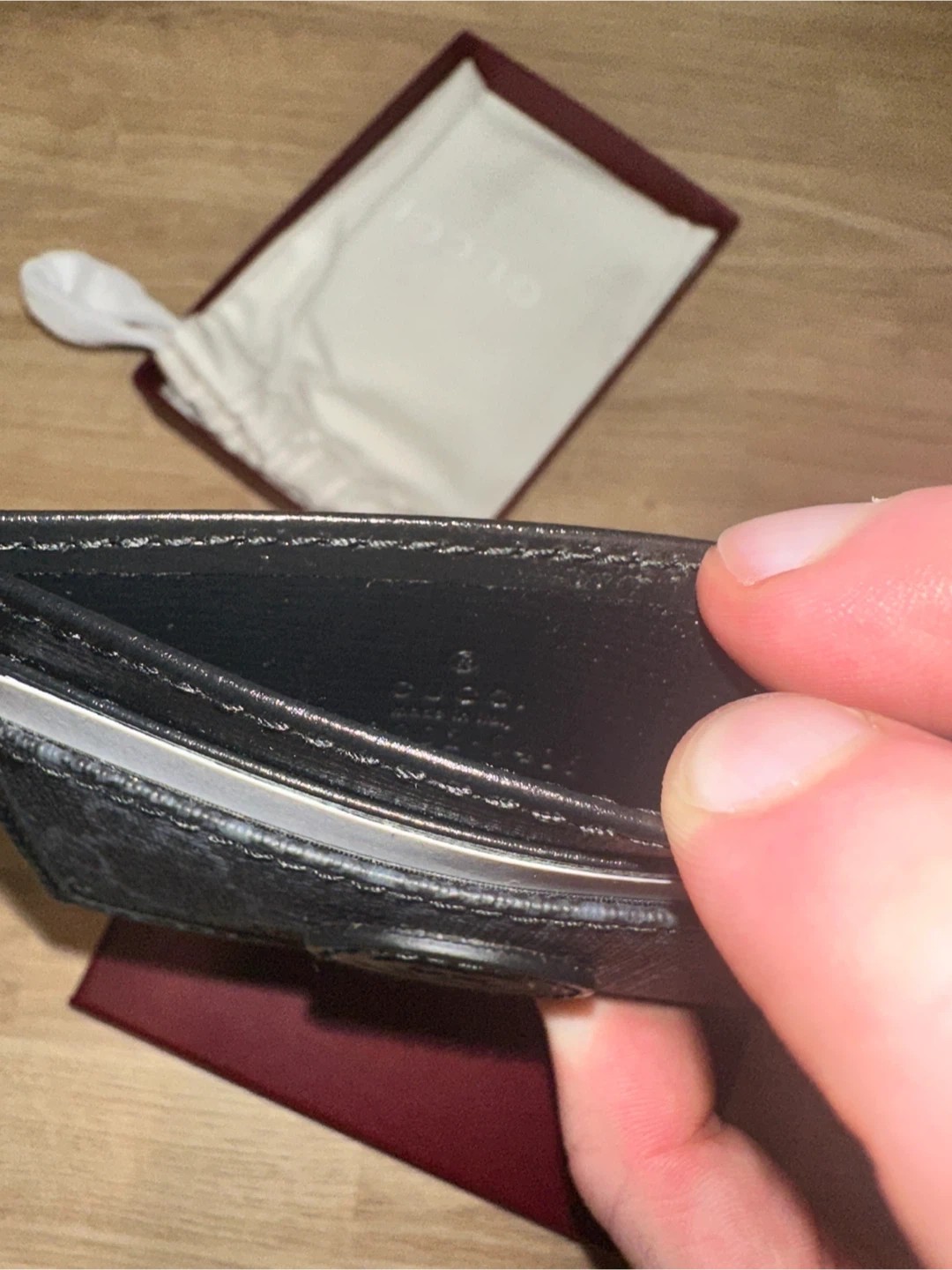 This is a Gucci card holder in black GG Supreme canvas. It comes with its original Gucci box and dust bag. The holder has multiple card slots.