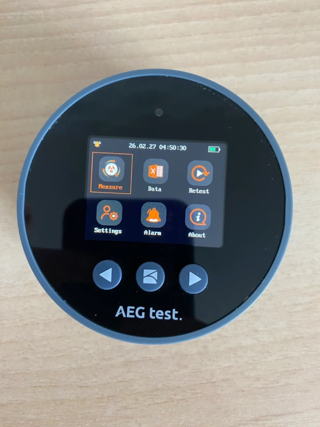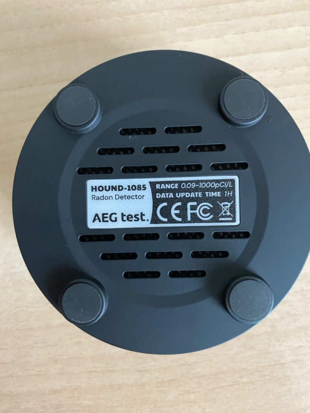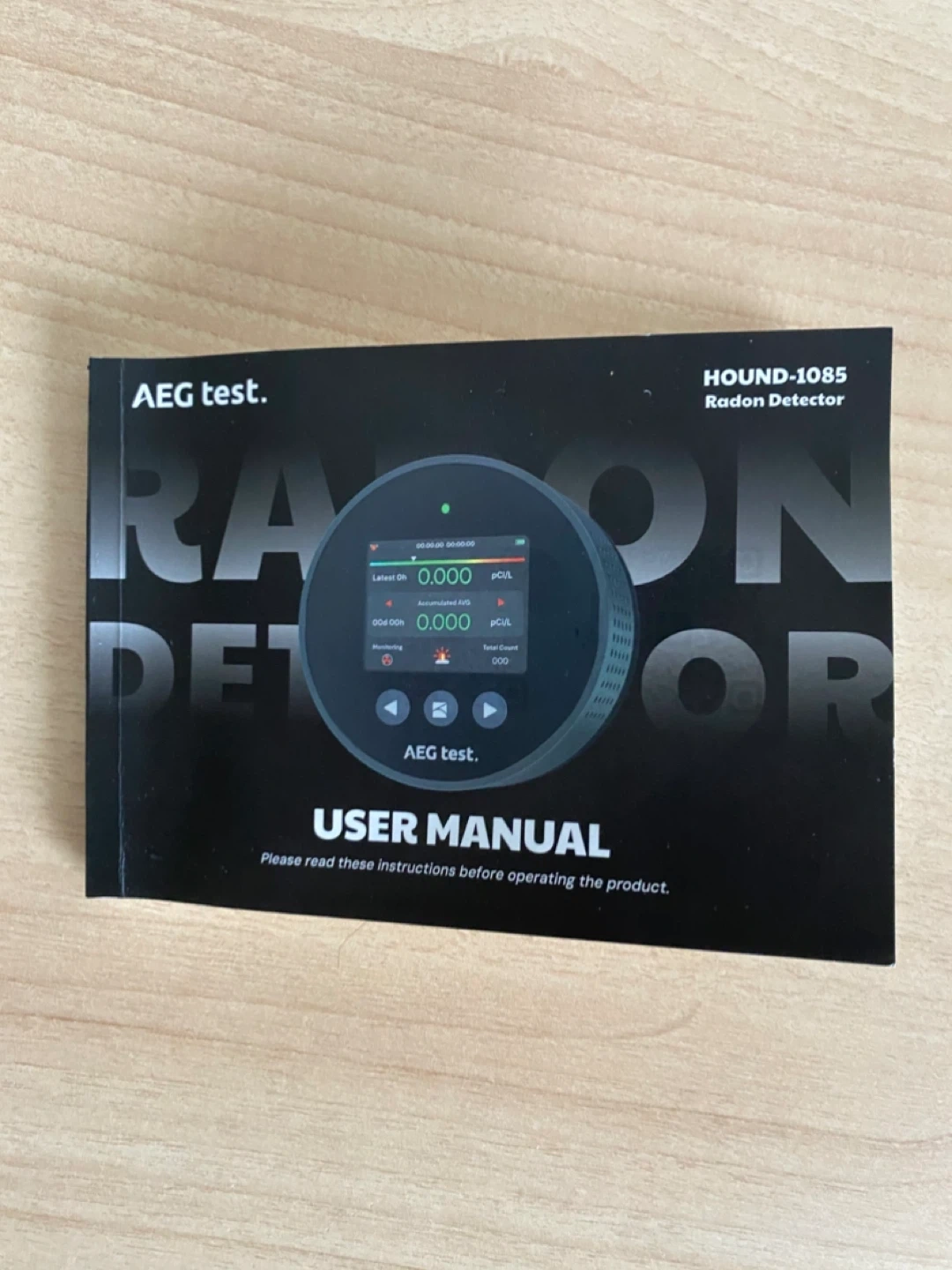 AEG HOUND-1085 Radon Detector. High-precision sensor with TFT color screen and sound alarm. Historical data records are available. Type-C rechargeable.