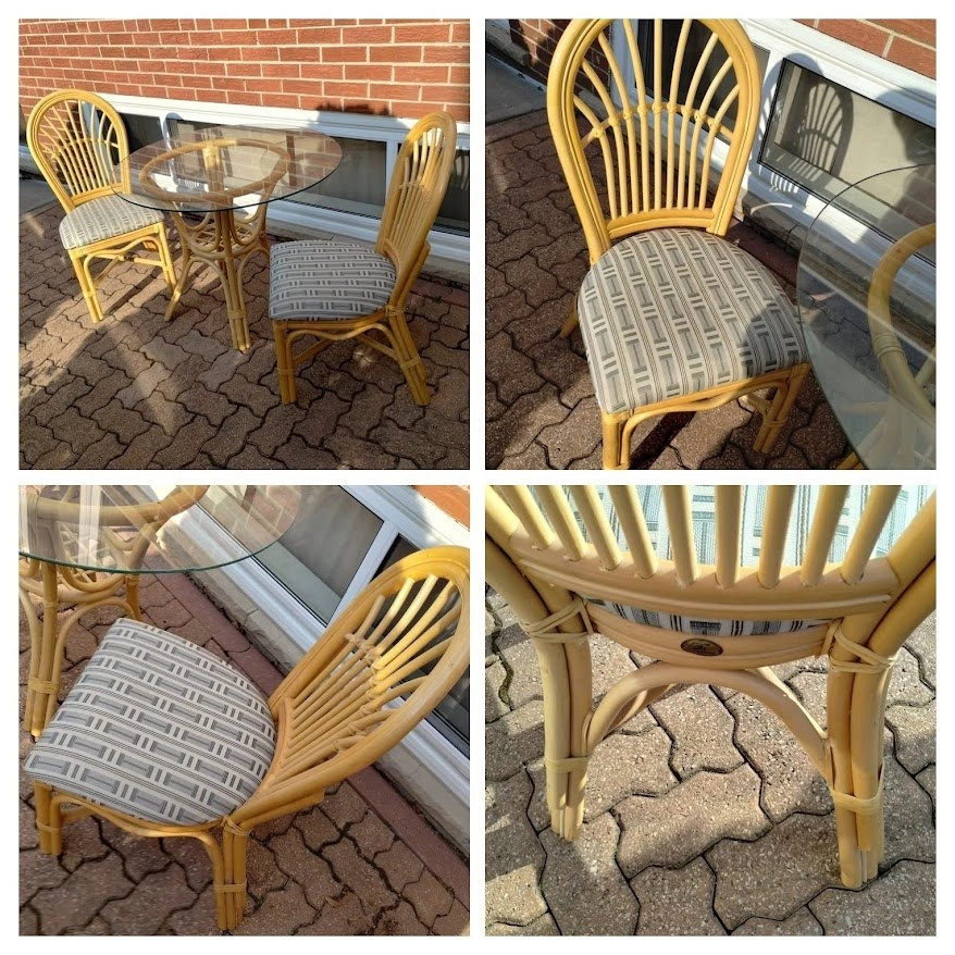 80's Retro 3-Piece Boca Rattan Wicker Table w/ 36" Glass Top and 2 Chairs