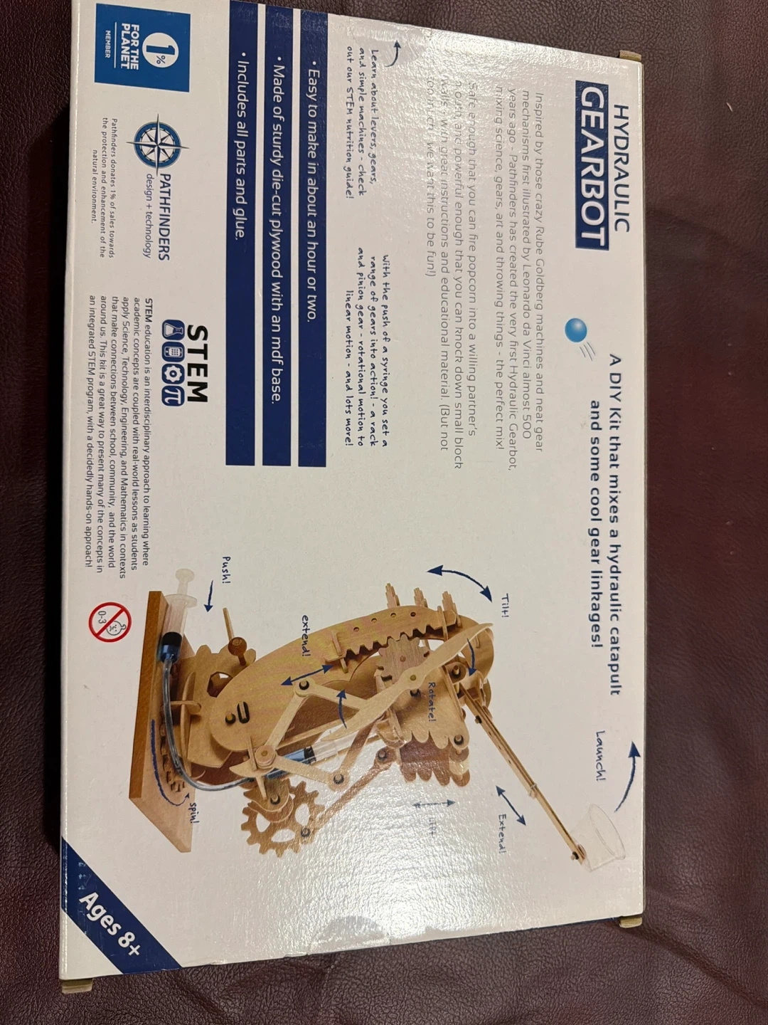 Get ready to build and learn with this Hydraulic Gearbot STEM kit! It's designed for ages 8 and up, and it includes all the parts and glue you'll need to assemble a working hydraulic catapult. Made of sturdy die-cut plywood with an MDF base, it's a great way to explore STEM concepts in a hands-on way