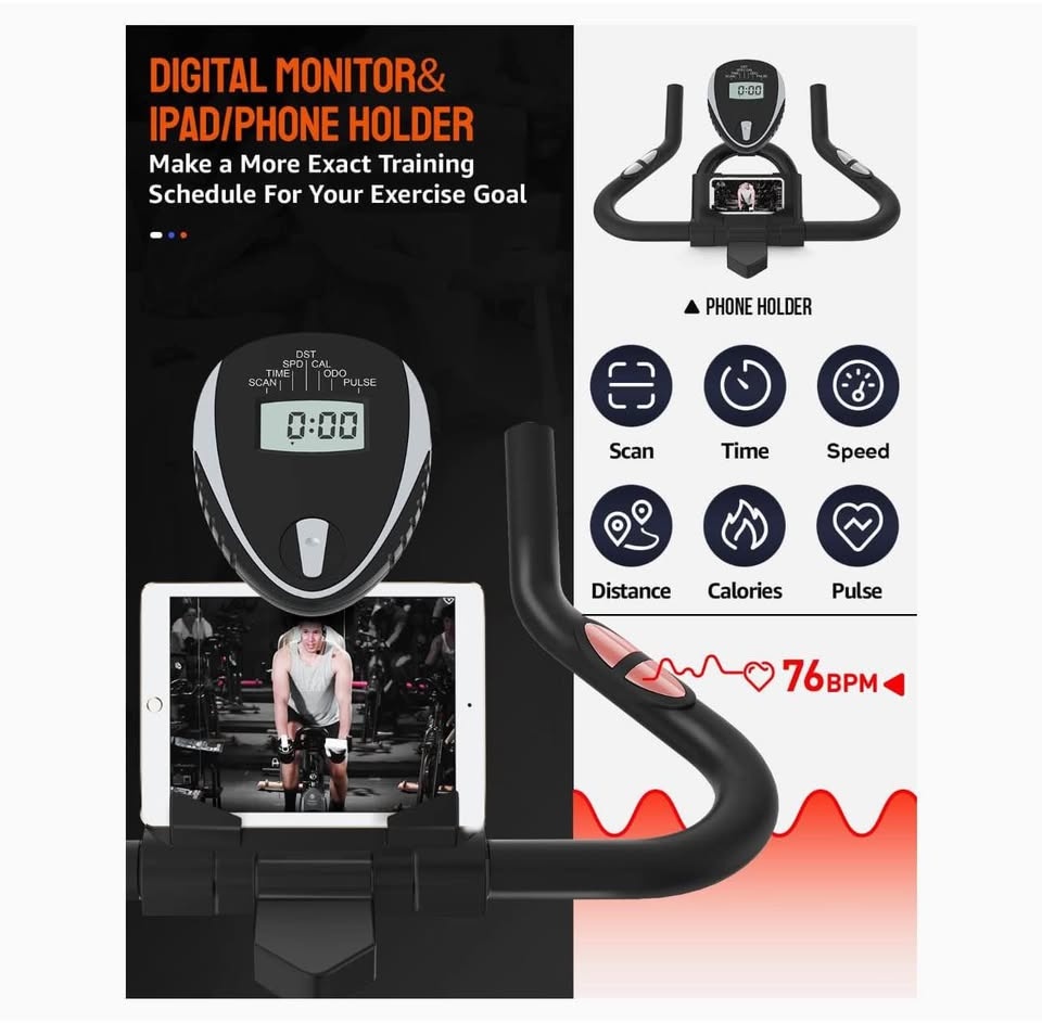 LCD Monitor & HAND PULSE: The Digital Monitor will real-timely track and record your exercise time, speed, distance, calories, and pulse, so that you can know your progress and adjust your exercise plan in time. Hand Pulse Handle with pre-assembled exercise monitor. HEALTHY CHOICES: Adjustable resistance, make this exercise bicycle meet the needs of beginners to professionals. It lets you burn fat fast, exercise core muscles, and strengthen your heart.