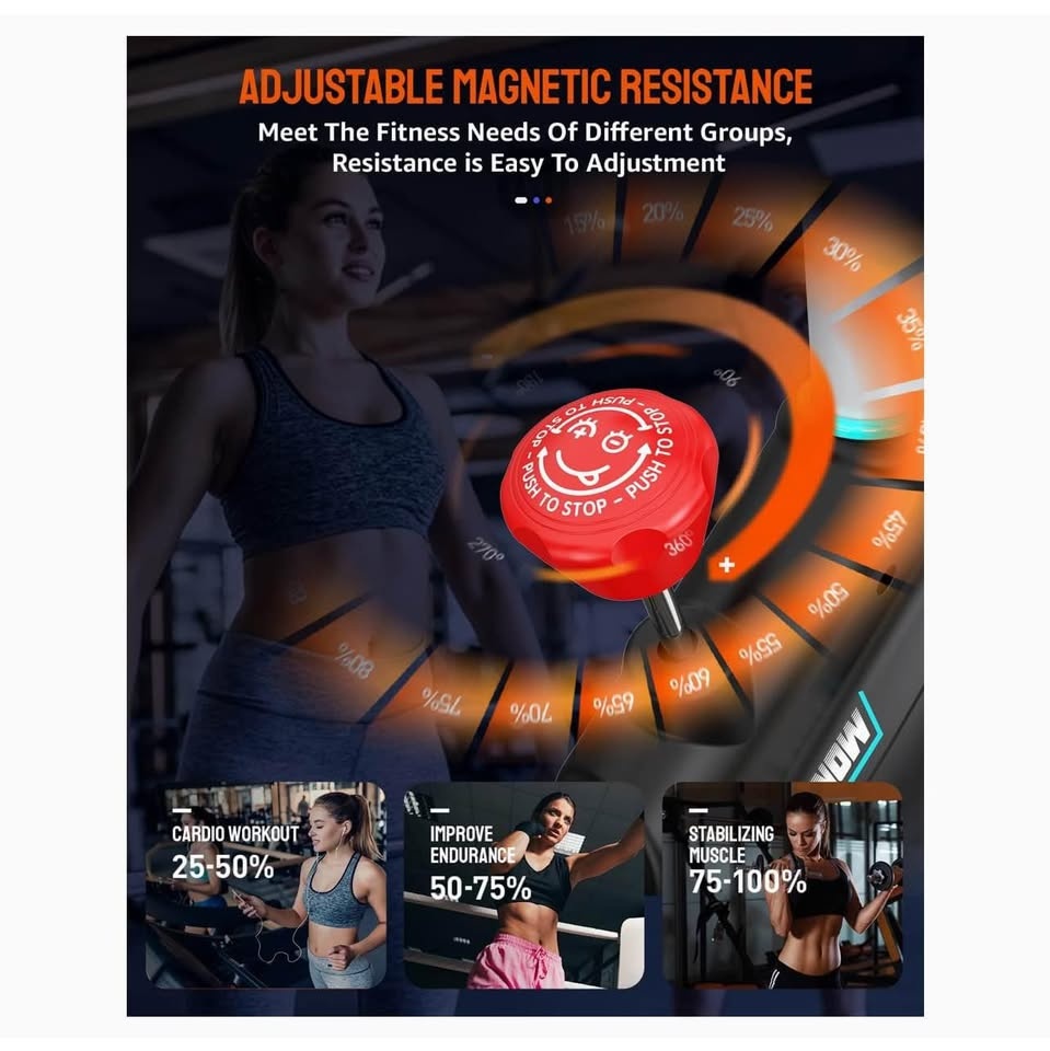 SAFE &CONVENIENT: Emergency stop brake and handlebar-adjust tube bump for safety. Multi-use holder can support the tablet, phones, water bottle, and other things. 2 transportation wheels for easy movement and digital monitor for easy tracking workout data.