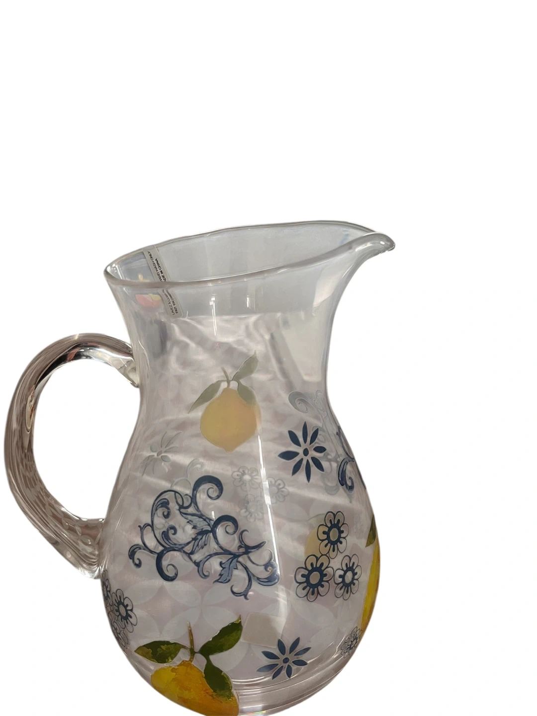 Glass Pitcher with Floral and Lemon Design