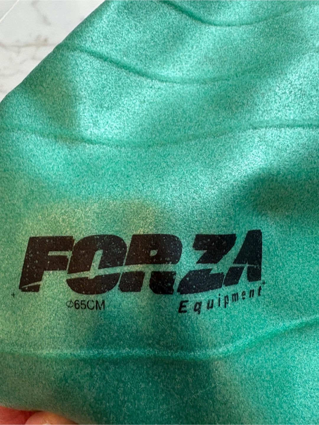 Forza 65cm exercise ball in green. It's made from durable material for your workouts. This ball is useful for core strengthening and improving balance.