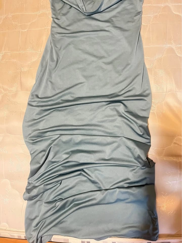 Beautiful long dress from Forever 21, satin finish in a light blue / baby blue color. Size L, flowy and flattering fit, worn once!! In great condition, no rips or damage. Perfect for special occasions, parties, dinners, weddings, or formal events.