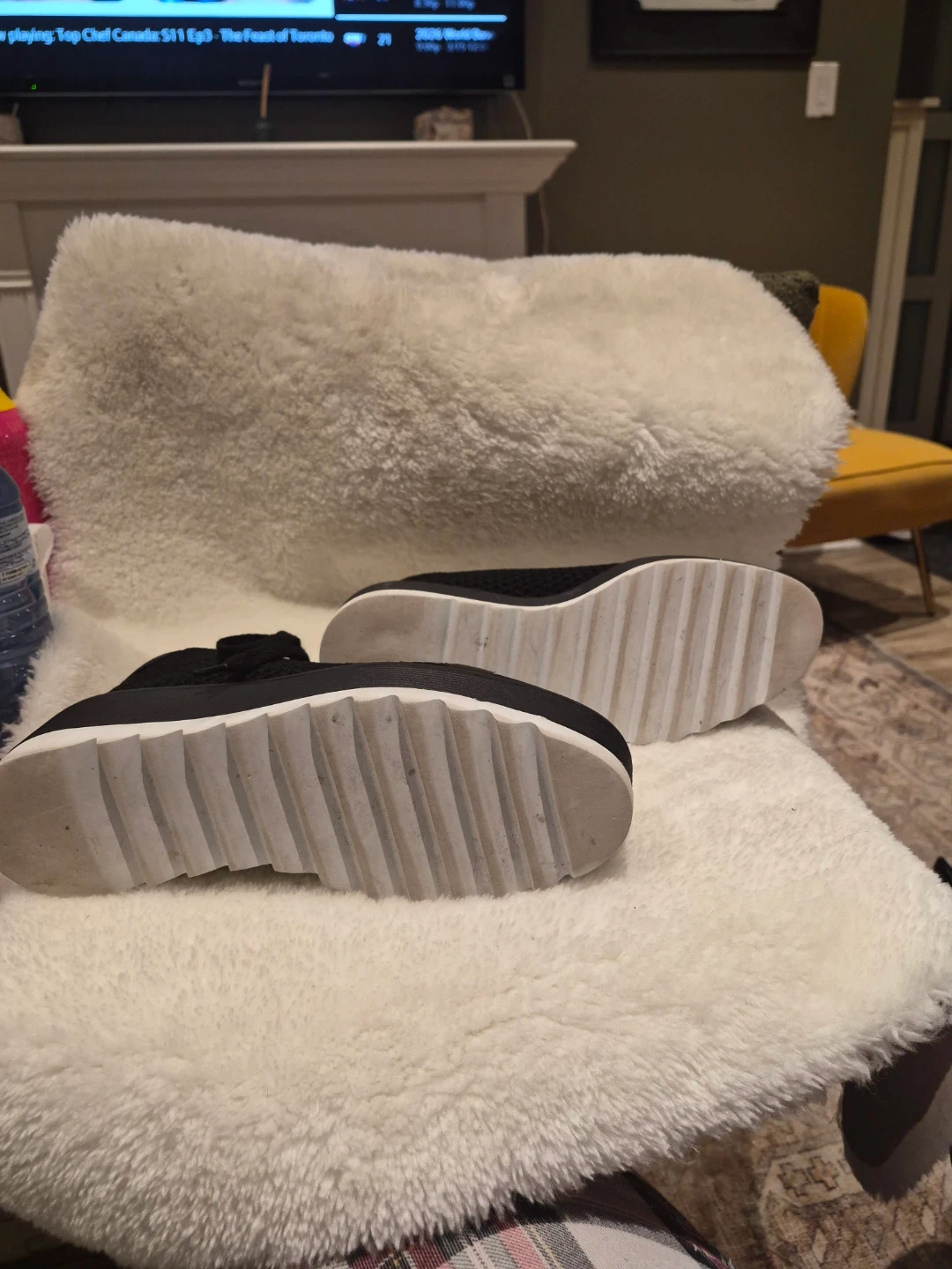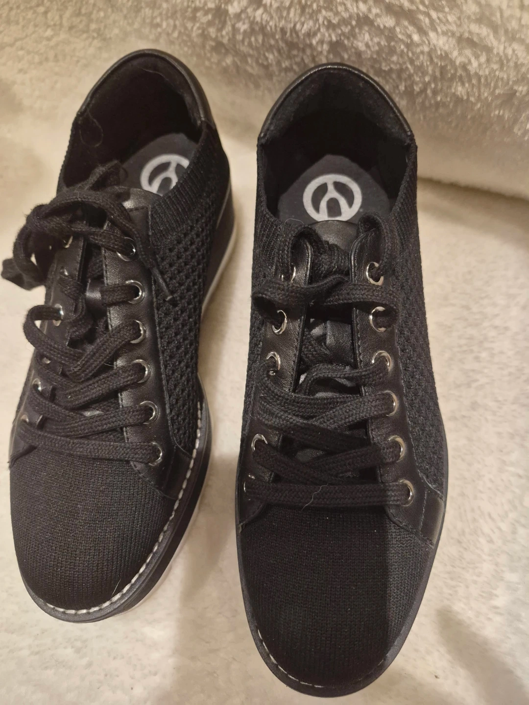 Black knit sneakers from The Wishbone. These comfy shoes feature a thick sole and black laces. They're a stylish choice for everyday wear!