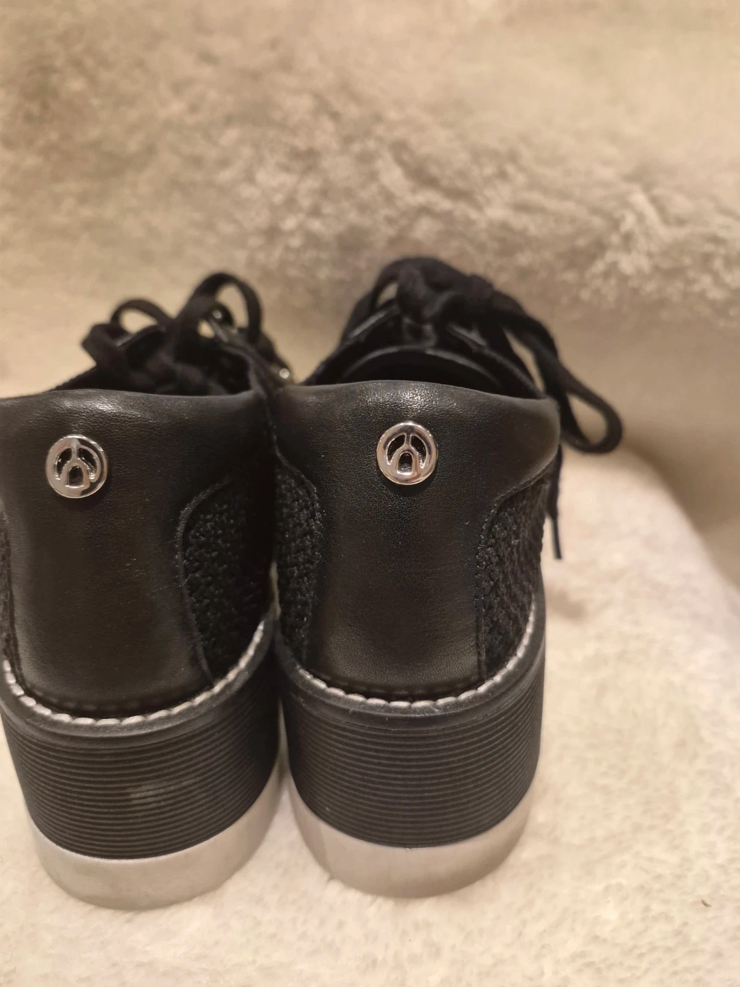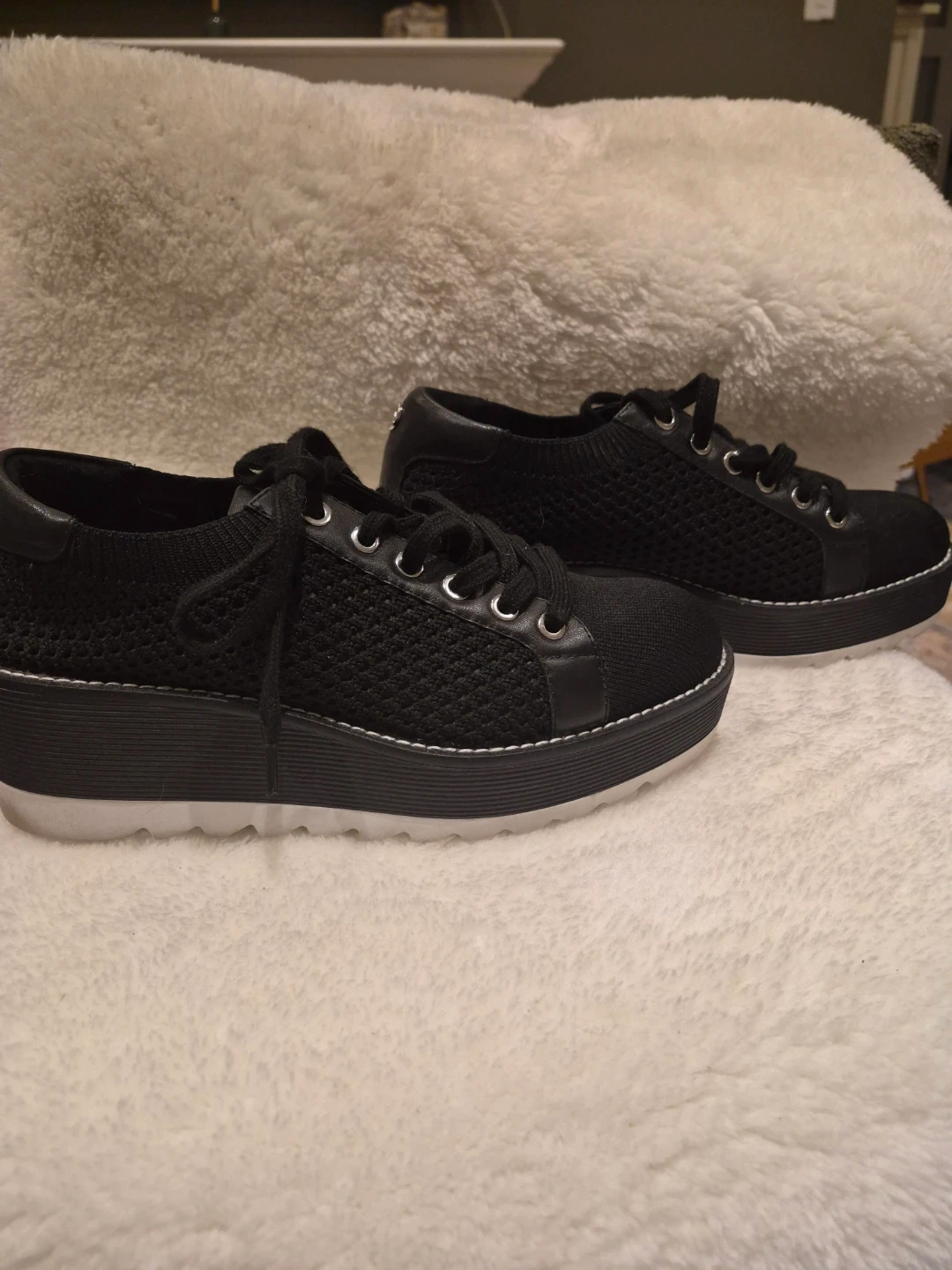 Black knit sneakers from The Wishbone. These comfy shoes feature a thick sole and black laces. They're a stylish choice for everyday wear!