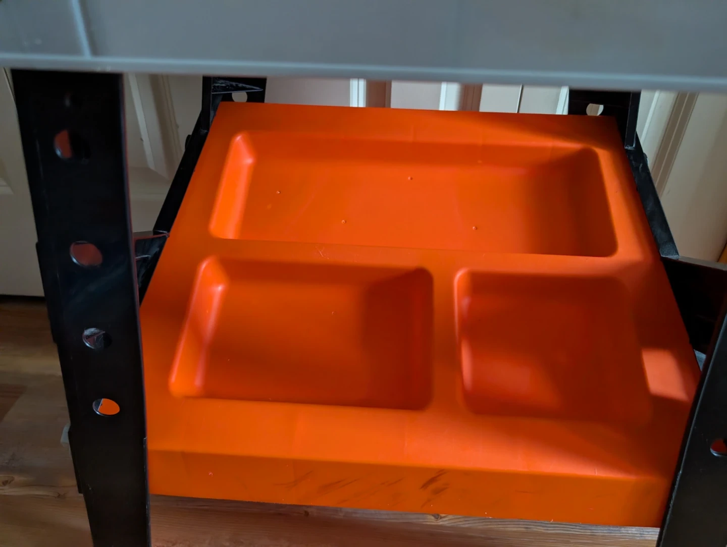 Toy tool set, comes with lots of tools, bolts and a tool box. Has some minor scratches and skiff marks. Comes with a battery operated saw