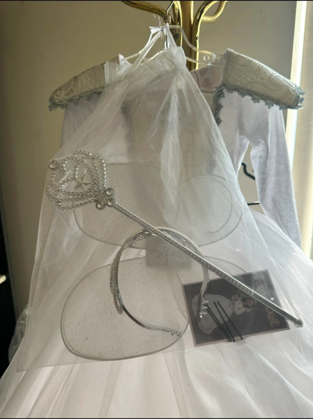 Selling a beautiful princess dress, perfect for dress-up or costume parties! Includes the dress, a wand, and a headpiece. It's in great condition and ready for a new little princess to enjoy