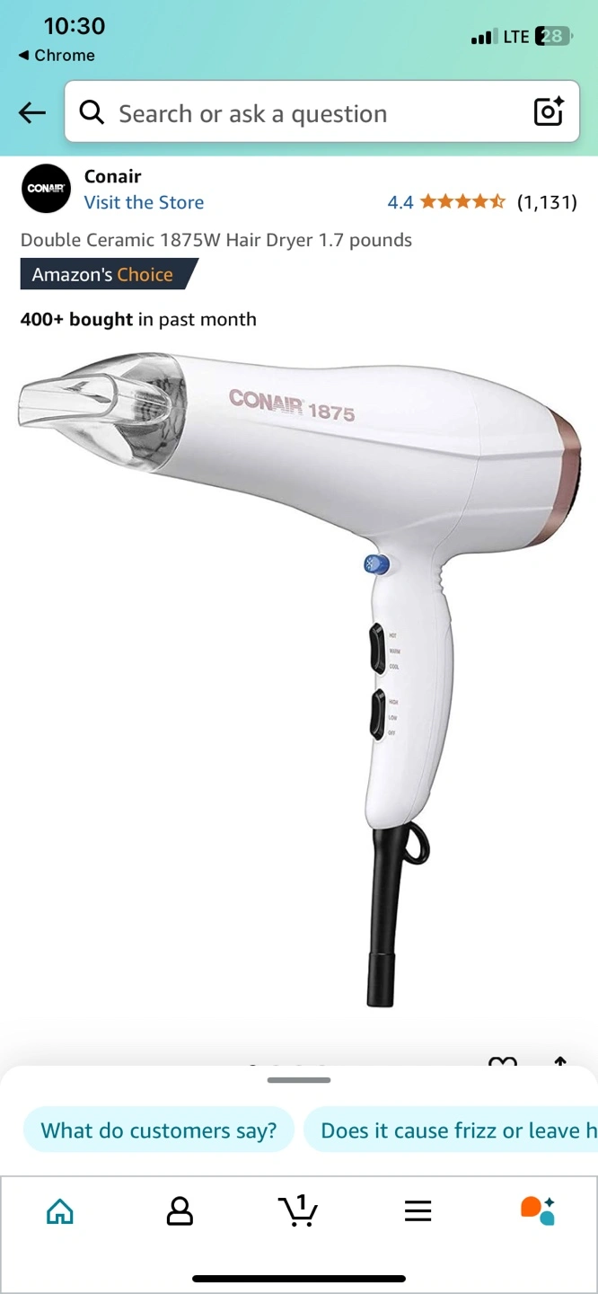 Conair Ionic 1875 Watt Double Ceramic Hair Dryer